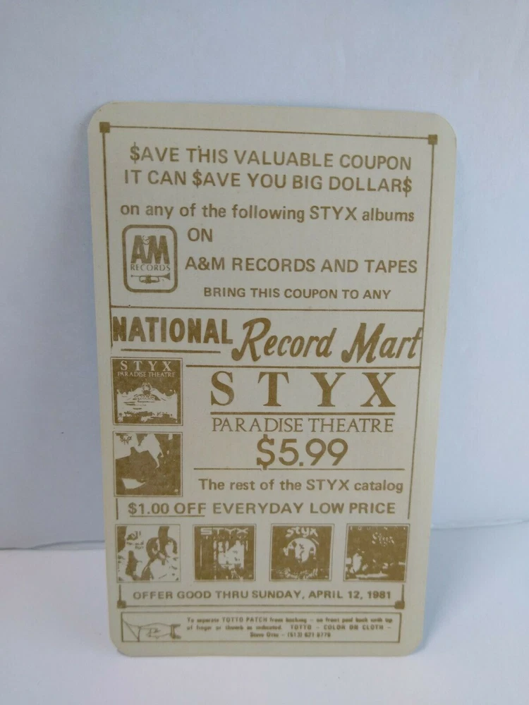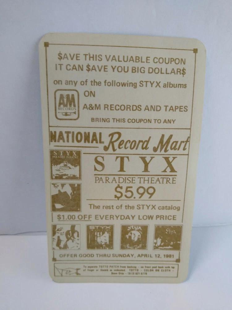 Styx Paradise Theatre Backstage Pass Original 1981 Rock Concert Vintage Gala