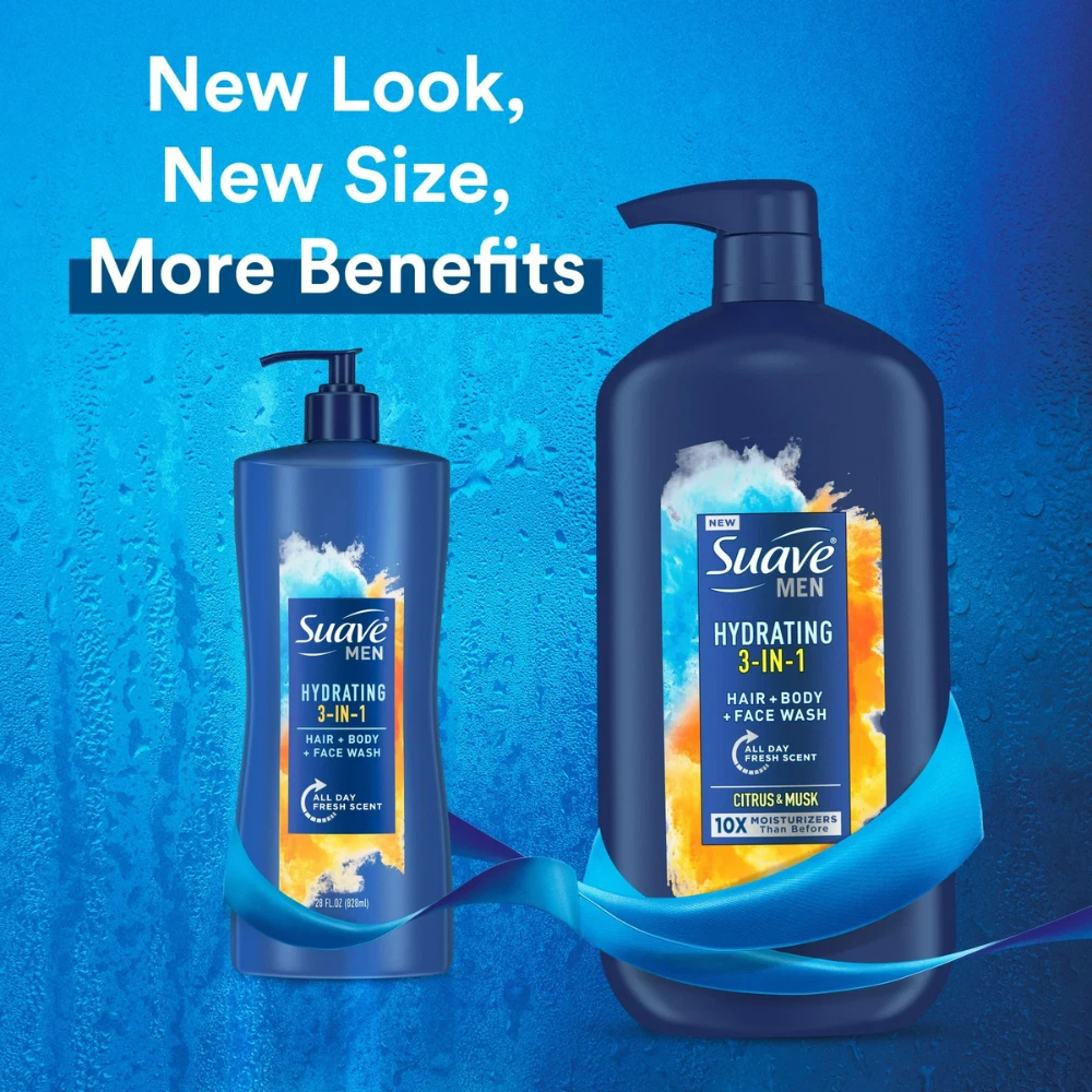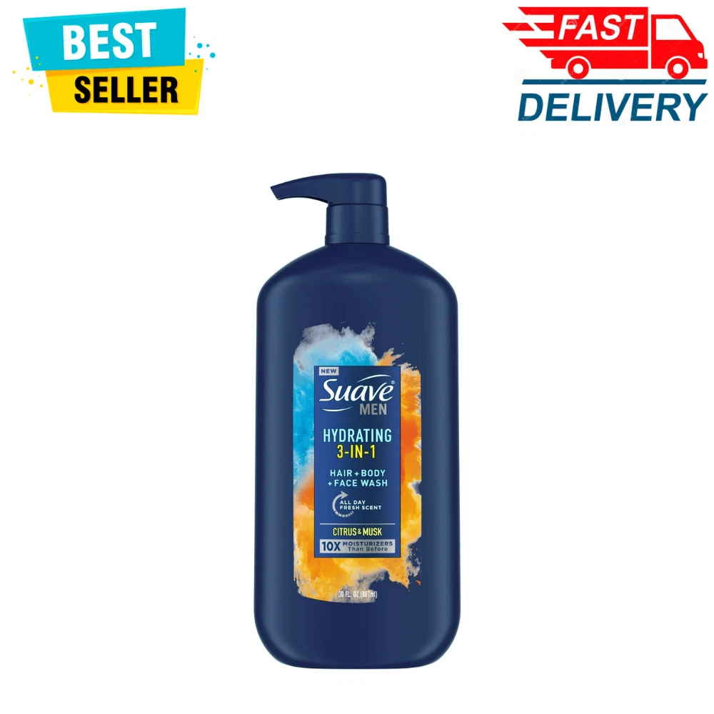 Suave Men 3 in 1 Mens Body Wash, Hair, Face & Body Wash, Hydrating, Citrus 30 oz Works Hard, Smells Great! Get clean from head to toe and embrace an all day fresh scent with the Suave Men Hydrating 3 in 1 Hair, Body, and Face Wash. Made for men, this body soap is a mens body wash, face wash and mens shampoo that is formulated to hydrate and moisturize skin instantly, keeping your routine quick and easy. With 10x more moisturizers than before! Our 3 in 1 mens body wash and mens shampoo leaves you with an all day fresh scent of citrus and musk. This Mens 3 in 1 body wash, shampoo and face wash is formulated with our Suave Men Triple-Action Technology. This Triple Action Technology works to deeply clean, washing away sweat, oil and impurities, leaving skin feeling soft and smooth, while smelling fresh all day. Moisturizing body wash. Suave Men 3 in 1 Mens Body Wash, Hair, Face and Body Wash, Citrus and Musk, 30 oz New look and even more benefits! Work hard & smell great with the Suave Men Hydrating 3 in1 that works as a mens 3 in 1 shampoo and body wash This Hydrating mens body wash is also a shampoo and face wash! This Mens 3 in 1 leaves hair and skin feeling instantly hydrated and moisturized with an all day fresh scent This Suave Men body wash leaves skin feeling instantly moisturized with 10x more moisturizers than before! Suave Men body soap has our Suave Men Dual-Action Technology that works to deeply clean, washing away sweat, oil and impurities, leaving skin feeling soft and smooth, while smelling fresh all day Discover our entire collection of Suave Men body wash, deodorants, shampoos and conditioners for an entire skin care routine for men Suave Men's 3 in 1 Mens Body Wash, Hair, Face and Body Wash 30 fl oz Moisturizing body wash Shipping Policy FREE SHIPPING in all orders! Orders are usually processed and shipped out after 72 HOURS during BUSINESS DAYS (Monday to Friday) after payment has been received. But please be reminded that we are NOT processing and shipping orders during WEEKENDS and HOLIDAYS. Please make sure your ADDRESS is VALID for both UPS and USPS COURIER SERVICES. Please be reminded that costs incurred due to INCORRECT or UNDELIVERABLE ADDRESS should be shouldered by the buyer. The shipping services that we use are UPS, FedEx, USPS etc. We ONLY ship to the 48 STATES, NO APO/FPO ADDRESSES or PO BOXES. We DO NOT ship to warehouse, freight company. Local pickups and combined shipping options are NOT provided at this time. Return Policy DOMESTIC RETURN ACCEPTED - 30 DAYS. Contact us for more information. Payment Policy We accept payment by any of the following methods: PayPal Items can be returned for exchange or full refund WITHIN 30 DAYS from the date you receive your merchandise. We are not responsible for any purchase after this 30-day period. Feedback & Contact Us Customer satisfaction is very important to us. If you have any problem with your order, please contact us and we will do our best to make you satisfied. If you have any queries, please contact us via Ebay. We usually respond within 24 hours on weekdays. Thank you for shopping at our store.