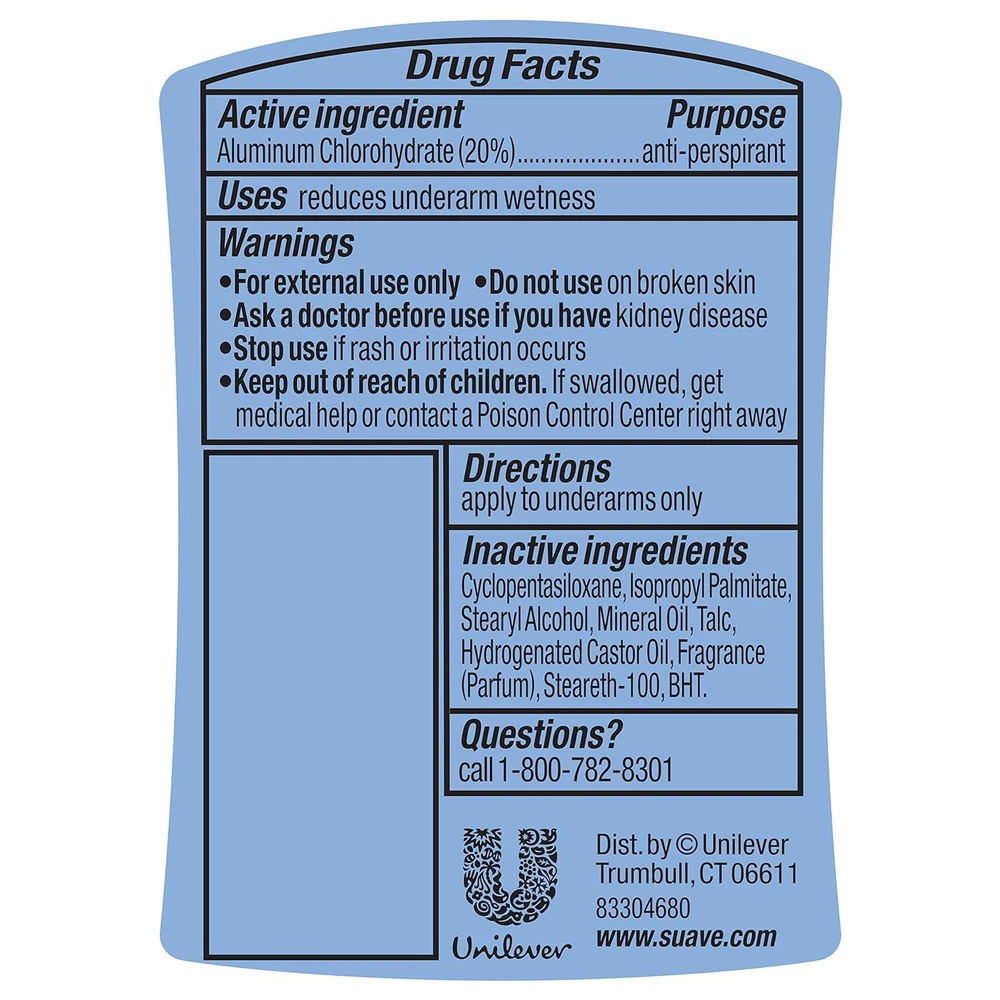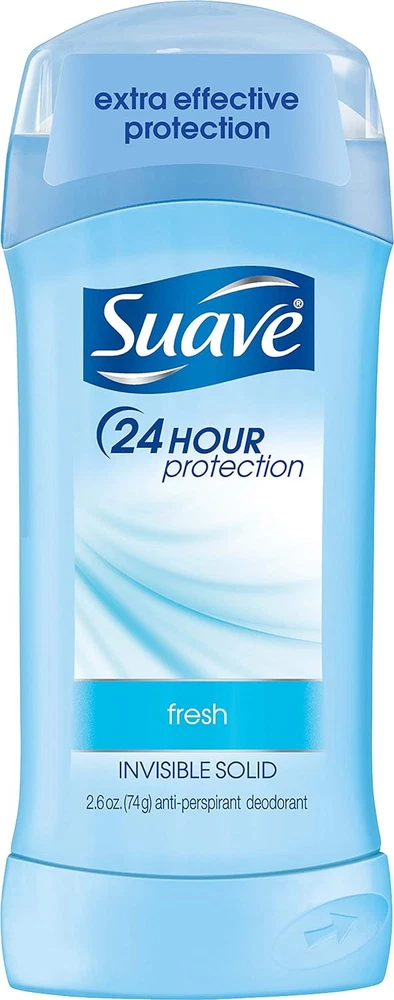 Product Description Suave 48-Hour Anti-Staining Antiperspirant & Deodorant Stick, Invisible Solid, Fresh, 2.6 Ounce (Pack Of 1) Suave's deodorant stick is perfect for active people, and will work to keep you dry and odorless all day. This deodorant for women will fight against sweat to prevent any unsightly sweat patches, and the fresh, pleasant scent in this women's deodorant will keep you smelling good. When you're looking for a strong deodorant, it's best to look for one that will provide a sweat block, at the same time as making you smell good. It's also important to find a product that won't stain your clothes or leave any residue on your skin. You can protect your clothes with this Suave deodorant, which is in a mess-free stick form that glides on and won't leave any residue or telling white marks on your clothes. The Suave Anti-Perspirant Deodorant works best when used with other products in the Suave range. Experiment with different deodorant scents, and try Sweet Pea and Violet or the Coconut Kiss option. SUAVE FRESH VALUE PACK: Stock up with the Suave antiperspirant deodorant, featuring our shower Fresh Anti-Staining Invisible Solid sticks. FRAGRANT DEODORANT: Each Suave Antiperspirant Deodorant stick is infused with a clean, fresh shower scent. 48H OF PROTECTION: When you need extra protection, Suave has you covered with these pleasantly fragrant invisible solid antiperspirant deodorant sticks. ANTI-STAINING FORMULAS: Suave deodorants are designed to stay on your skin and not your clothes. A solid invisible stick makes the perfect travel deodorant. SUAVE IS CRUELTY FREE: Globally, Suave does not test on animals and is Certified Cruelty-Free by PETA. Get long-lasting, 24-hour odor and wetness protection with Suave Invisible Solid Deodorant Suave Invisible Solid Antiperspirant Deodorant stays on skin, not on clothes, so you get effective underarm protection with no messy residue Suave Deodorant for women is recommended for everyday use Enjoy underarm odor protection with the refreshing, clean, shower fresh scent Suave Invisible Solid Antiperspirant Deodorant stick goes on clear so you feel clean and refreshed all day Proven to work as well as specialty brands, Suave Antiperspirant Deodorant is a great value Suave fresh invisible solid deo and antiperspirant stick is anti staining and protects for 48 hours This antiperspirant deodorant provides long lasting odor and wetness protection Suave’s deodorant for women has an anti staining formula stays on skin, not on clothes Suave fresh invisible solid antiperspirant protects with a clean, fresh shower scent This antiperspirant and deodorant stick goes on clear, so you feel clean and refreshed all day Suave deodorant for women is recommended for everyday use Ingredients Active Ingredient: Aluminum Zirconium Tetrachlorohydrex GLY (15.2%).Inactive ingredients: Cyclopentasiloxane, Isopropyl Palmitate, Stearyl Alcohol, Mineral Oil, Talc, Hydrogenated Castor Oil, Fragrance (Parfum), Steareth-100, BHT.