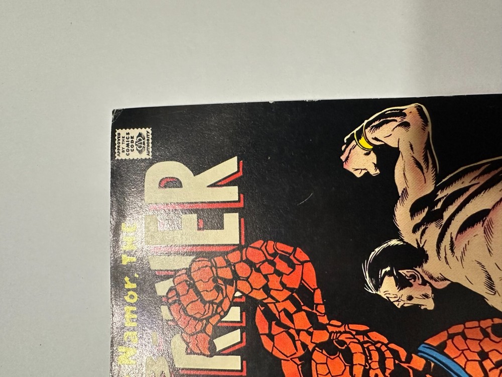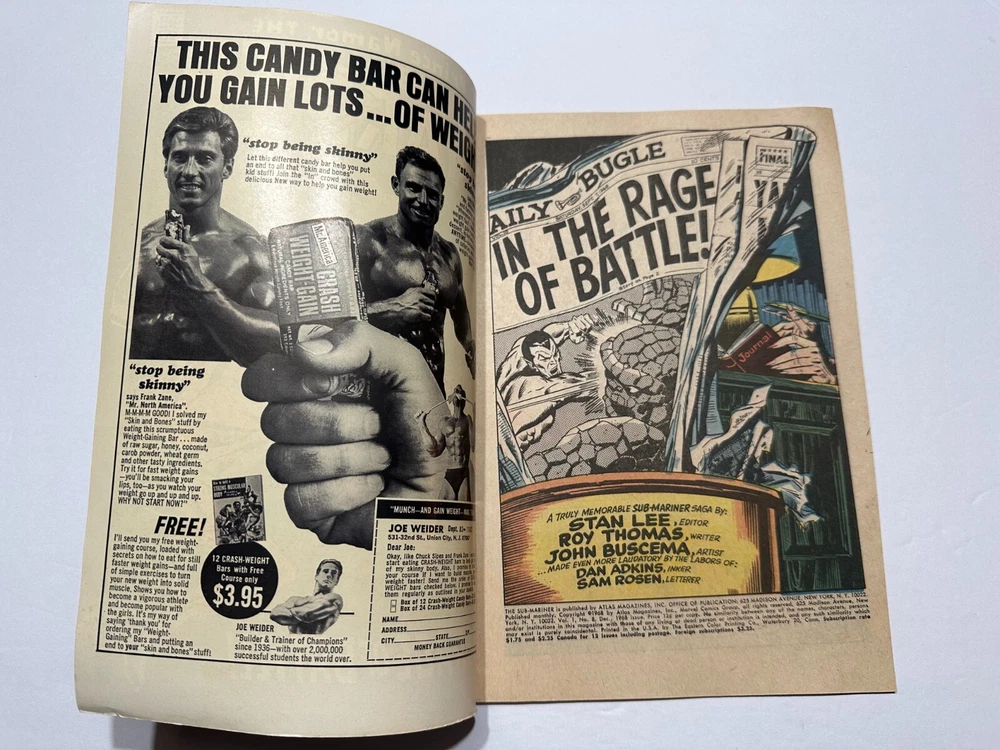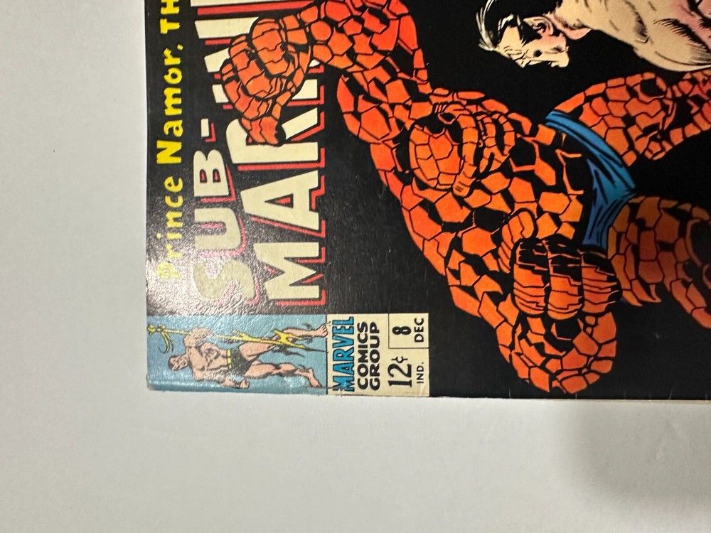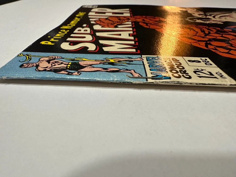 This is an amazing copy of Sub-Mariner #8, published by Marvel Comics in December 1968. The issue features an all-star creative team including Dan Adkins, Roy Thomas, and John Buscema. The comic is written in English and is part of the Silver Age era (1956-69) of US comics.The issue features an incredible cast of characters including Diane Arliss, Namor (Namor Mckenzie), Betty Dean Prentiss (Reintroduction), Human Torch (Jim Hammond) (in Flashback), Avengers Goliath (Henry Pym), Lady Dorma, Vision, and The Thing (Ben Grimm). The cover art by Dan Adkins and John Buscema is stunning and adds to the overall value of this collectible. This issue is a must-have for any fan of superheroes and collectors alike.