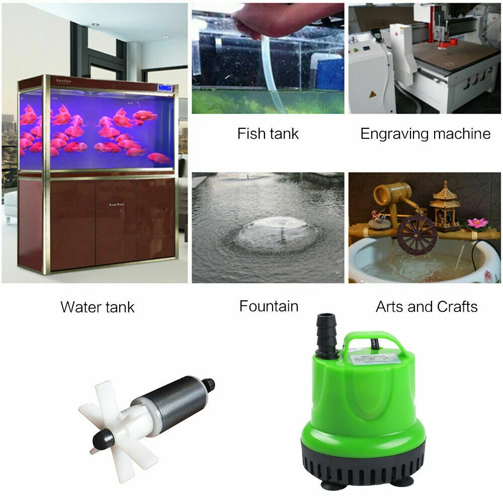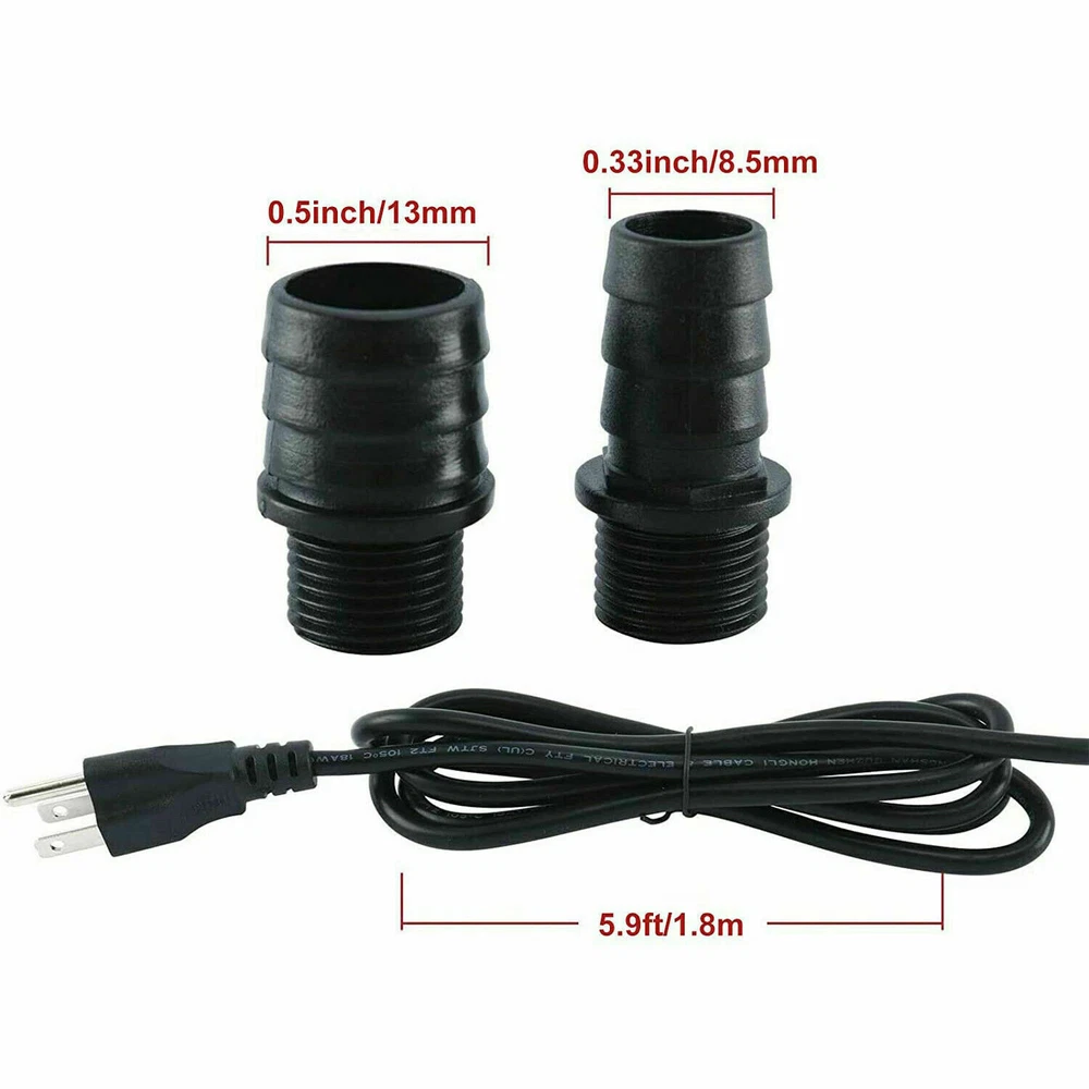 Note: Warehouse error to the product labeled as 220V, the actual voltage is 110V. mind careful to shoot !!! Feature: ◆12W high-efficiency energy-saving motor. (Make sure to connect the water pipe to the smallest nozzle and make sure the joint is tightly sealed). ◆Ultra-quiet design, with 2 nozzles (0.33 inches and 0.5 inches). High-quality motors provide you with a quiet environment. The threaded joint makes it more stable. The impeller shaft is stainless steel with long service life and corrosion resistance. ◆Suction cups: 4 powerful rubber suction cups at the bottom of the pump help to fix it in place, reduce resonance and make it quieter. ◆360°water pump: The water inlet is close to the bottom of the cylinder, the lowest water level can be lower than 1cm/0.4", and the water is absorbed more thoroughly. ◆Removable and washable: The submersible pump can be disassembled without any tools, which is very convenient for cleaning. ◆Wide applications: high-performance energy-saving pumps, designed for ponds, fountains, waterfalls, hydroponic systems, irrigation systems and water features. Specification: material: plastic Color: green Voltage: 110V ◆12W: Maximum lifting height: 4 feet. Maximum flow: 158GPH (600L/H) Voltage: 110V/60HZ Outlet: suitable for 5/16" or 1/2" ID (inner diameter) tube Power cord length: 5.9ft Package included: 1x pump 2 x socket adapter On Nov 29, 2024 at 23:32:58 PST, seller added the following information: