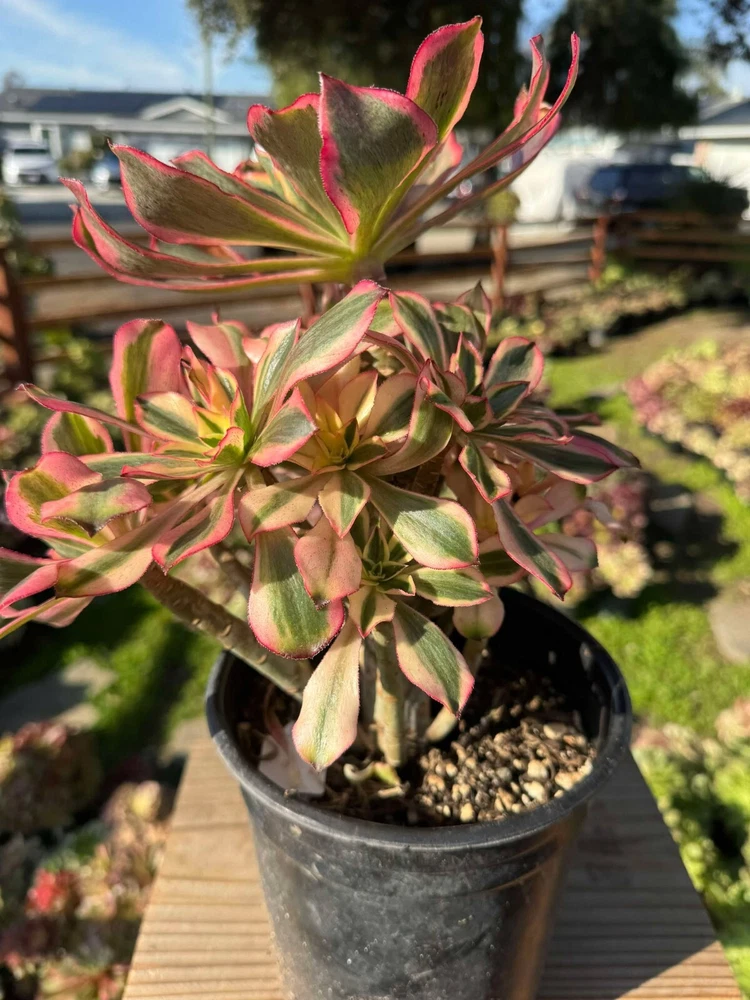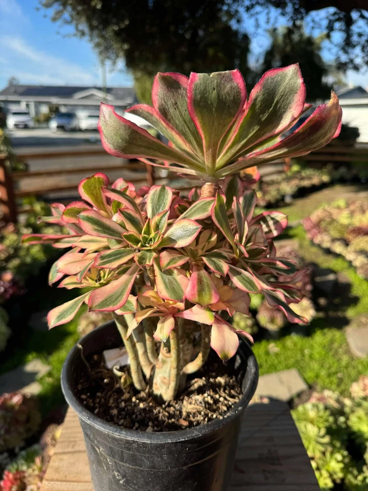 Garish Blooming Aeonium Phantom variegated cluster with free shipping. Randomly pick. You will receive similar plant in pictures. (Cluster may be separated during shipping. Pot not included)