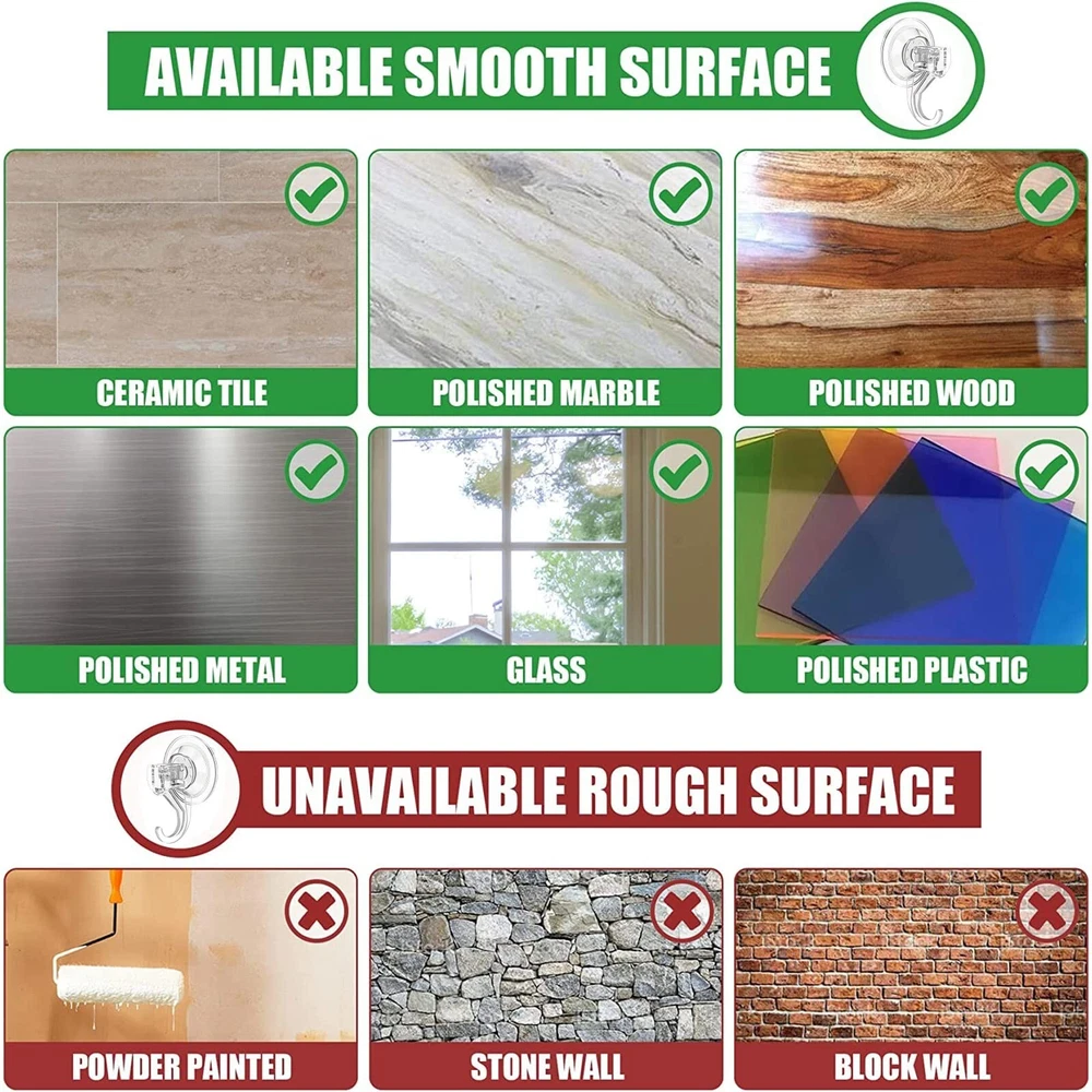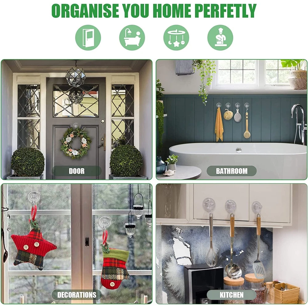 Suction Cup Hooks for Shower, Large Clear Heavy Duty Suction Cup Hooks, Wreath Hangers for Front Door Window Glass Kitchen Towel Loofah Utensils (4 Packs) Product Details Size: 4 Clear Brand: EAMOMORK UPC: 799460326545 EAN: 0799460326545 MPN: Does not apply Color: Clear Brand: EAMOMORK Material: PET Plastic Finish Type: Pvc Mounting Type: Door Window,Window Mount Item Dimensions: 1.8 x 2.7 x 3.5 inches Item Weight: 1.6 ounces Theme: Home Organization Style Name: Modern Color: Clear Finish Types: Pvc Material Type: PET Plastic Weight Supported: 10 Pounds Surface Recommendation: Smooth surfaces UPC: 799460326545 Model Number: Hooks-001 Brand Name: EAMOMORK Recommended Uses For Product: Shower, Kitchen, Front Door, Wreath, Decoration Included Components: Accessories Additional Features: Heavy Duty Minimum Weight Capacity: 10 Pounds Number of Hooks: 4 Weight Capacity Maximum: 10 Pounds Mounting Type: Door Window,Window Mount 1. Best Material: This window suction cups with hooks are made of high strength transparent PET material, which is non-toxic and odorless compared to the PVC material in the market 2. No Residue & No Damage: Shower suction hooks do not need to destroy the wall, no sticky residue, by pressing out the air of the suction cups, forming a pressure difference between the inside and outside, so that the hook can work and reuse 3. Heavy Duty: Double vacuum powerful shower hooks suction cup have stronger suction and can withstand 10 lbs (4.5 kg). But please note that if you want to make full use of the hook, you need to use it on a smooth, clean and no dirt on surface 4. Wildly Use: These clear suction cup hooks for windows are also widely used in kitchen utensils and bathroom items, it can help you better organize items, while it can also be used to hang garlands, Christmas decorations and string lights, etc 5. Service: You will receive 4 shower suction cup hooks, if there is any problem with the product please contact us by email first, we will reply within 24 hours to make you experience satisfactory service