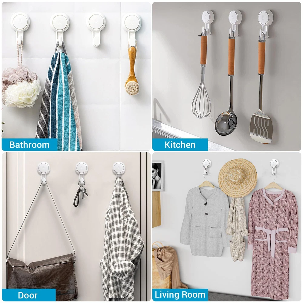 kitchen towel holder wreath hanger shower suction hooks glass shower door hook suction cup hooks loofah hook Use Tips and Attention: This four hooks work only on non-porous,smooth surfaces such as polished ceramic tile, mirror, glass window,polished stainless still wall or plastic board etc. Won't work on any porous,bumpy,rough or textured surfaces such as rough coating surface, unpolished marble or wooden door,rugged porcelain surface etc. 【POWERFUL AND WATERPROOF HOOKS】 – The suction hooks can hold up to 5.0 kg/11LB and they are waterproof so they can be used in wet areas such as bathrooms and kitchens. The shower hooks will be the best accessory holder for your towel, bathrobe, loofah and other bathroom or kitchen items. 【EASY & QUICK TO INSTALL WITHOUT TOOLS 】– No tools, no screws and no drilling holes on the wall by using the vacuum suction hooks. Simply choose a smooth surface, peel off the film and push the hook center "PUSH" hard until you hear "PUFF"! Easy install and never fall off. With a 360-degree rotation design, our strong Suction Cup Hooks for Shower allow you to feel free to stick in any direction, don't worry about crooked. 【REMOVABLE & RE-POST HOOKS 】– The heavy duty hooks are easy to remove and re-install in a new location for repeat use. Please use a credit card to remove and wash the suction cup with warm water before re-installation. The removable hanger hooks are ideal choice for condominiums and rentals. 【SUITABLE SURFACE】 – The suction holders cannot be used on oiled surface, unfinished marble, rough surface or over grout line lime wall, emulsion varnish, wall paper, non-painted wood, mosaic etc. These vacuum suction hooks suitable for using on Wall Tile, Glass, Painted Wooden Door, Stainless Steel and other Impervious surface. 【PATENTED PRODUCT】 – The suction holder hooks are made of TPE and ABS plastic, both of them have superior, long-lasting endurance, weather resistance, oil resistance, anti-aging, and no defects.