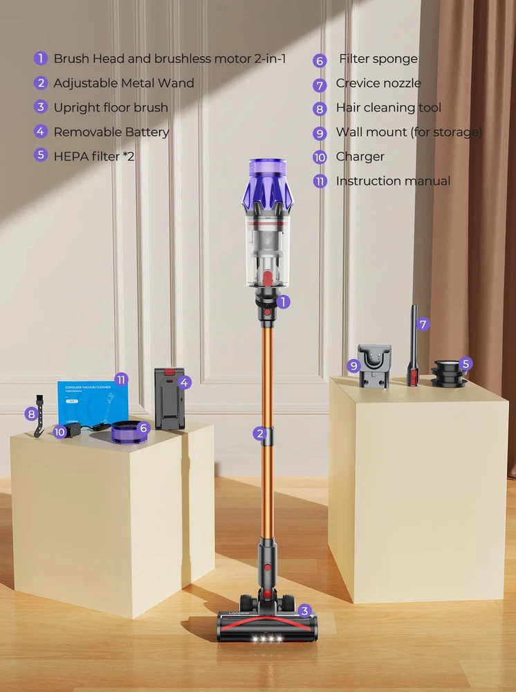 180000PA 5-in-1 Wireless Car Vacuum Cleaner with Strong Suction Handheld