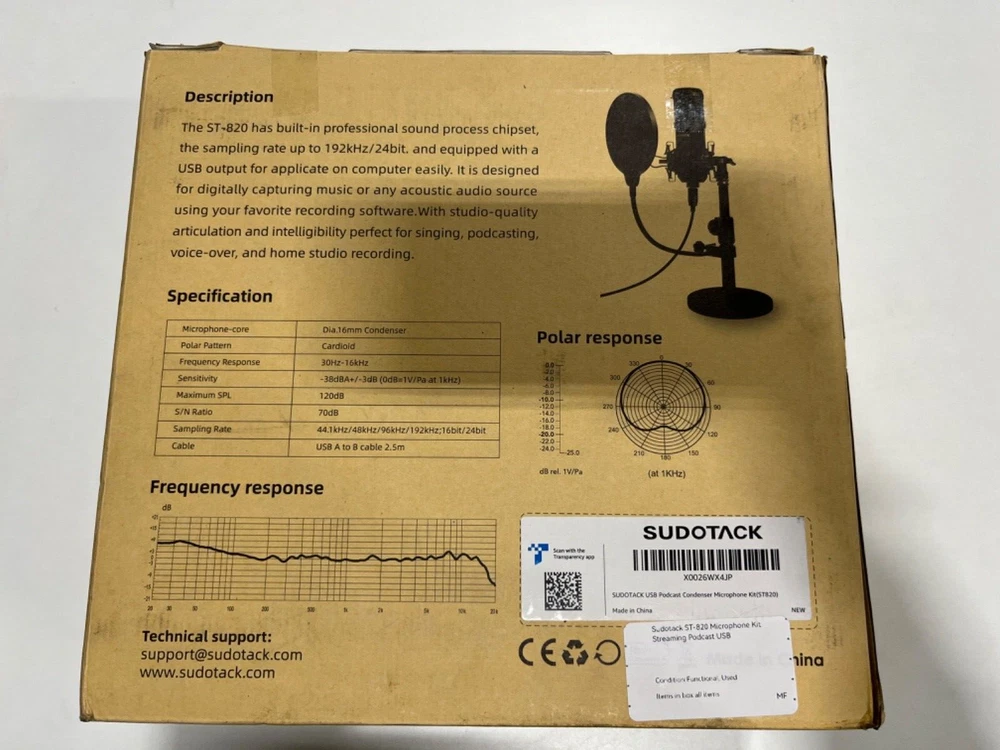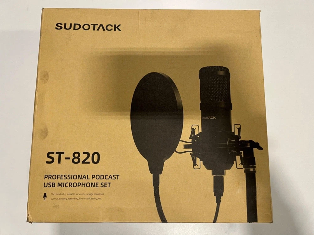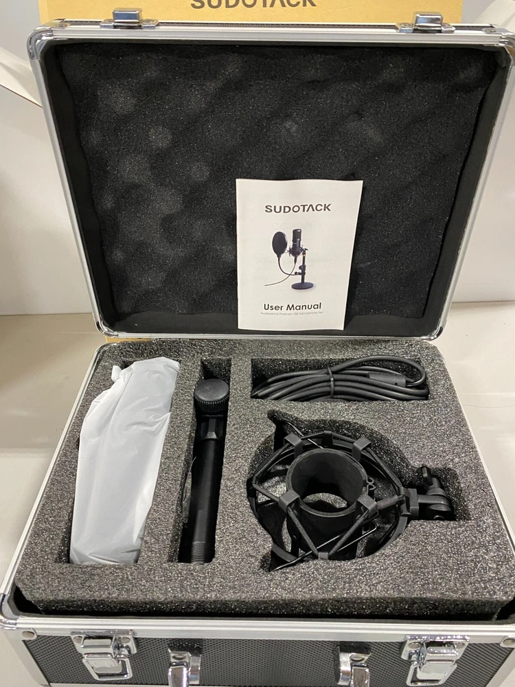 Sudotack ST-820 Microphone Kit Streaming Podcast USB w/ Case Stand Cord & filter