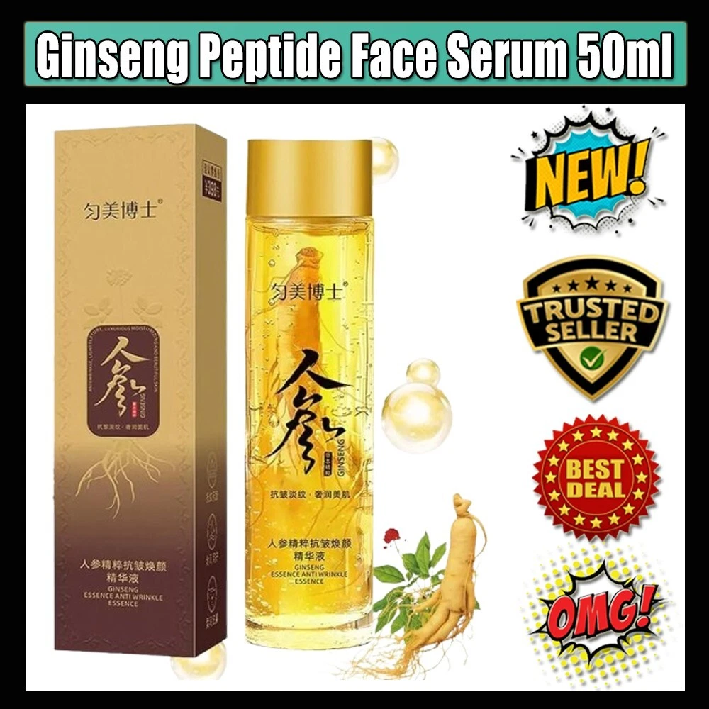 Korean Ginseng Peptide Anti-Aging Serum Oil – Reduces Wrinkles, Boosts Collagen BENEFITS: Anti-Aging Power: Reduces fine lines, wrinkles, and sagging skin for a smoother, firmer appearance. Korean Ginseng Extract: Known for its antioxidant properties, it energizes and rejuvenates tired skin. Peptide Enrichment: Boosts collagen production to enhance skin elasticity and texture. Deep Hydration: Provides lasting moisture to keep your skin plump and nourished. Brightens Skin Tone: Reduces dullness for a radiant, youthful complexion. Why Choose This Serum? This lightweight, fast-absorbing formula is suitable for all skin types, including sensitive skin. Whether you're starting an anti-aging routine or enhancing your current regimen, this serum offers a natural and effective solution for healthier, younger-looking skin. Note: This Product is designed to deliver optimal results, offering high-quality performance and satisfaction. Please note that individual experiences and outcomes may vary based on personal use, preferences, and unique circumstances. For best results, we recommend following the provided guidelines and ensuring the product is used as intended. Product result may vary for every individual. NOTE Hello Buyer, Thank you for your interest in our product! Please note that I am a reseller, and your order will be shipped directly from our nearest warehouse to your address. If you have any questions or need assistance, feel free to reach out.