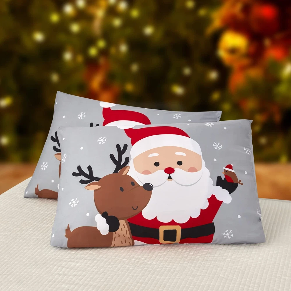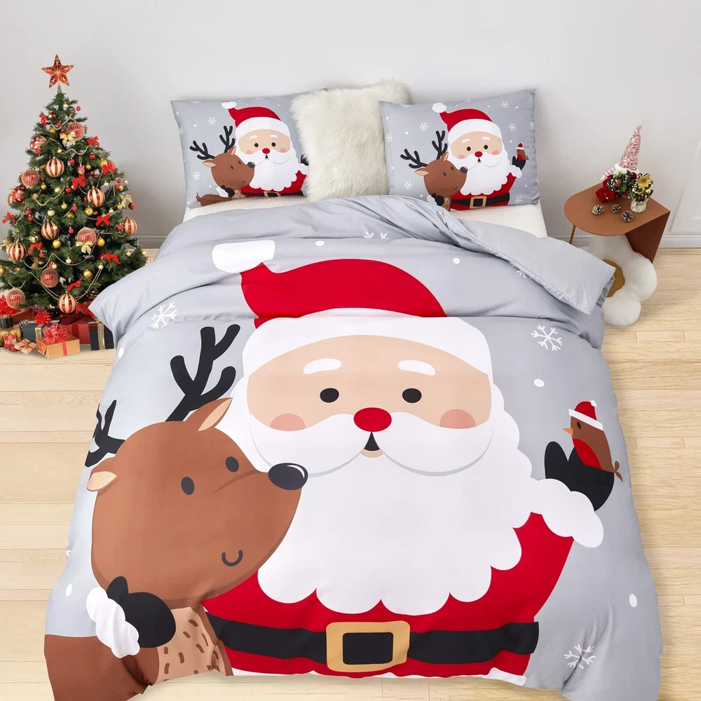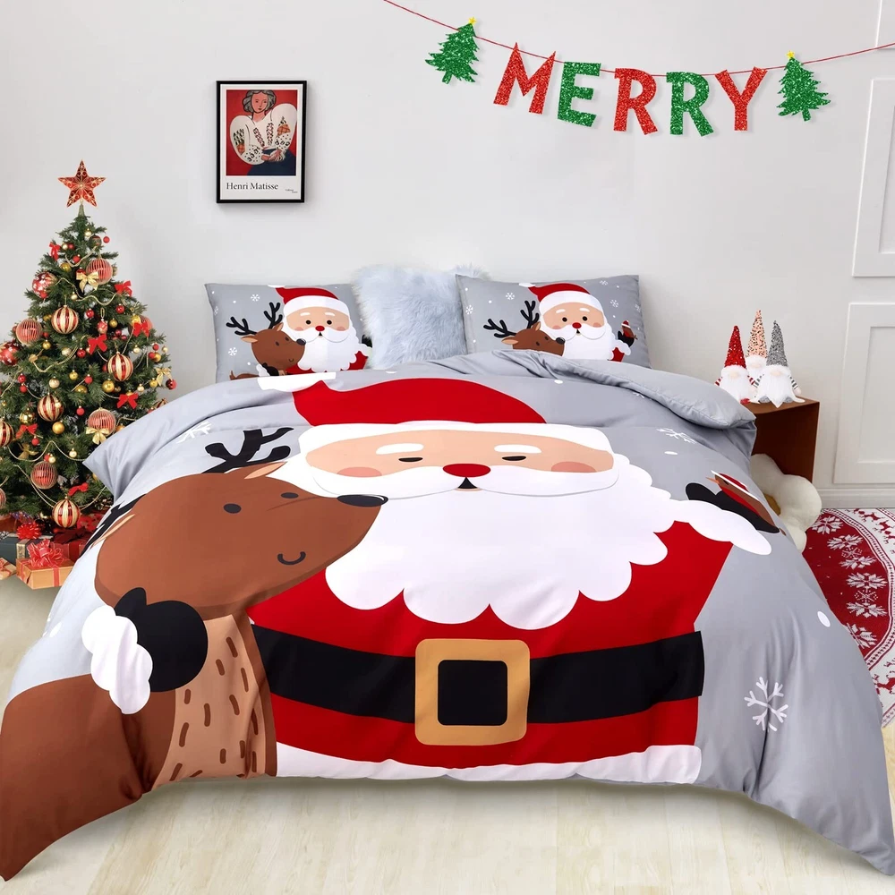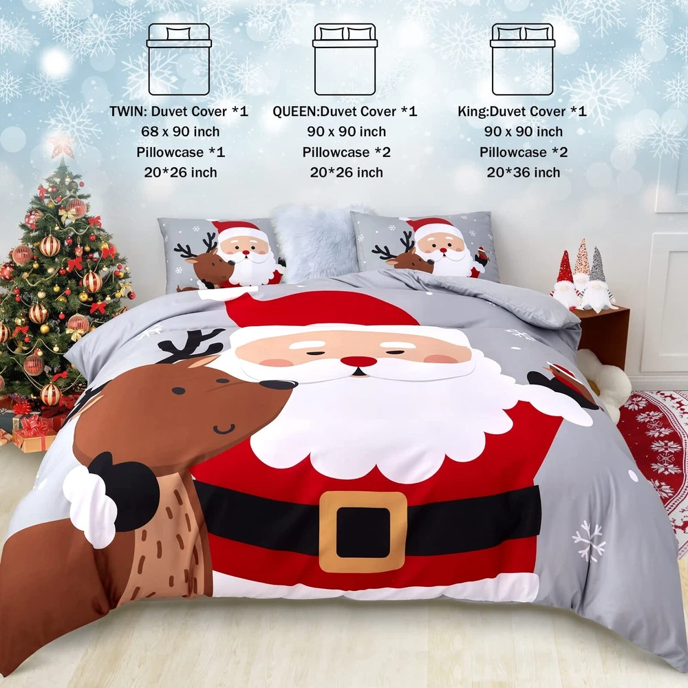 Sufdari Christmas Duvet Cover Set Queen Size Bedding Comforter Cover Santa Snowflake Printed Duvet Covers Santa Claus Pattern for Kids (1 Duvet Cover+2 Pillowcases No Comforter) Product Details Size: Queen Brand: Sufdari MPN: Does not apply UPC: Does not apply EAN: Does not apply Size: Queen Material: Polyester Color: Snowflake Pattern: Solid Brand: Sufdari Size: Queen Material: Polyester Color: Snowflake Pattern: Solid Brand: Sufdari Number of Pieces: 3 Special Feature: Bagged Style: Christmas Included Components: duvet covers and pillowcases Closure Type: Zipper Age Range (Description): Kid Occasion: Christmas Product Care Instructions: Tumble Dry Theme: Christmas Cartoon Character: Christmas Seasons: All Item dimensions L x W x H: 11.8 x 9.8 x 1.96 inches Pillowcase Quantity: 2 Unit Count: 3.0 Count Sham Quantity: 2 Manufacturer: Sufdari Product Dimensions: 11.8 x 9.8 x 1.96 inches Item Weight: 2.46 pounds Date First Available: June 27, 2022 PERFECT CHRISTMAS DECORATIONa Novelty Christmas Decoration for Master's, Guest's and Kids' Room. Christmas Themed Pattern and Elegant Color Give Your Bedroom a Fresh Look During Christmas Season. SIZE INFORMATIONTwin duvet cover: 1duvet cover set (68"x 90")&1 pillowcase (20"x 26") ; Available in duvet cover queen: 1 duvet cover set (90"x 90")&2 pillowcases (20"x 26"); Available in duvet cover king: 1 duvet cover set (104"x 90") &2 pillowcases (20"x 36").(NOT include comforter) EASY CARE & CLEANINGEach Comforter Cover complete with zipper closure, and it is easy to remove and wash. Also there are ties at each corner of the duvet cover, your comforter will stay in place nicely in the duvet cover. Machine washable in cold water and tumble dry on low. SOFT MICROFIBER MATERIALMade from 100% brushed microfiber, the duvet cover offers long-lasting strength and cotton-like softness to sleep with and resistant to shrinking, pilling & wrinkles. 100% SATISFACTION GUARANTEEDWe promise 30 days return and free replacement & life-time free customer service. Any issue please feel free to contact us, we will do our best to assist you utill you are saitisfied.