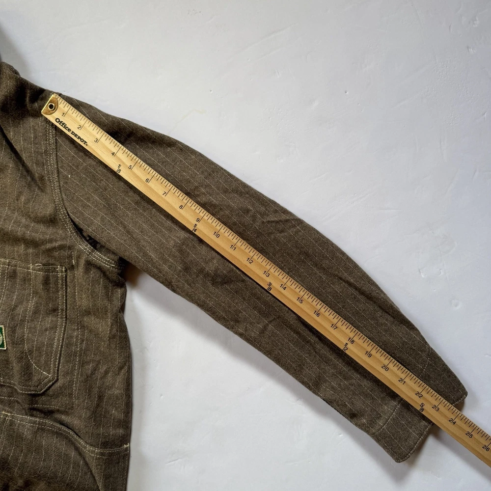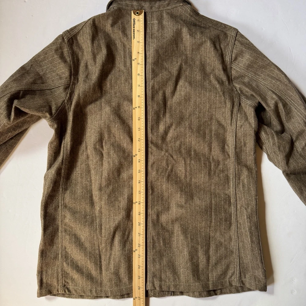 ⚠️ PLEASE READ – MATERIAL, CONDITION, FIT & COLOR DISCLAIMER ⚠️ This jacket is made from 100% wool. Wool is a natural fiber and may display subtle variations in texture, tone, and surface appearance. These characteristics are inherent to wool garments and are not defects. 🧵 MATERIAL DISCLOSURE (IMPORTANT) • Fabric: 100% Wool • Wool naturally reflects light differently depending on angle and environment. • Slight tonal shifts and texture variation are normal and expected with wool fabric. • This garment is intentionally produced in a heritage workwear style, where natural fabric character is part of the design. 📏 FIT & MEASUREMENTS • Please rely only on the exact measurements provided, not tag size or assumptions. • Fit preferences vary (layering, relaxed vs tailored). • Returns will not be accepted due to fit or sizing issues. • Buyer is responsible for comparing measurements with a similar garment they already own. 🎨 COLOR & LIGHTING DISCLAIMER (CRITICAL) • Item color may appear lighter or darker depending on: • Indoor vs natural lighting • Camera exposure • Screen and display settings • The jacket may show brown, olive, or gray undertones depending on lighting conditions. • These shifts are normal for 100% wool fabric and do not indicate fading or inconsistency. • Color difference due to lighting or screen variation is not a valid reason for return. 🔍 CONDITION DISCLOSURE • Item is in very good pre-owned condition. • No holes, no tears, no structural damage. • Any minor signs of wear are consistent with wool workwear fabric and normal use. • Please review all photos carefully — photos form part of the description. 🔁 RETURNS POLICY • No returns for fit, sizing, color tone, lighting differences, or buyer preference. • Returns accepted only if item is materially different from the written description. By purchasing, buyer confirms they have reviewed all photos, measurements, and disclosures.