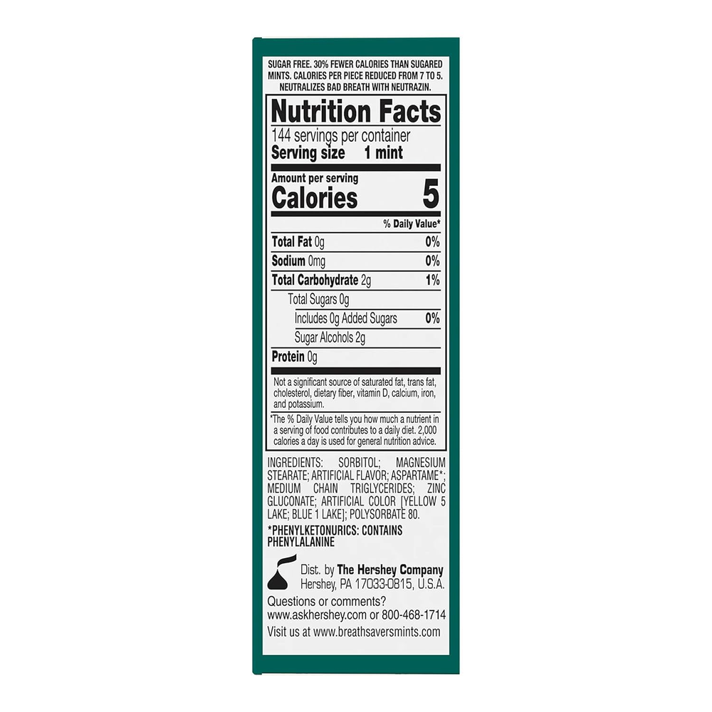 Contains twenty four (24) 0.75-ounce rolls of BREATH SAVERS Wintergreen Sugar Free Mints in a box Freshen up your breath anytime, anywhere with BREATH SAVERS wintergreen sugar free breath mints that fit right into your pocket or purse Sugar free breath mints in 24 individually wrapped rolls for on the go convenience Add a little minty freshness to your anniversary date night, job interview or any other occasion where you want to impress with your fresh breath Cool, crisp wintergreen flavor in every sugar free mint that will keep your breath fresh and your mouth feeling invigorated Freshen up your breath with BREATH SAVERS wintergreen sugar free breath mints. Keep a roll in your purse, pocket, car, or desk drawer at work for when you need a quick breath refresh any time of day. These rolls of sugar free breath mints are perfect for moments when you need to be up close and personal but don't want to worry about your breath. Whether you're heading to work, a meeting, or a date, BREATH SAVERS wintergreen sugar free breath mints are the perfect addition to your daily routine.