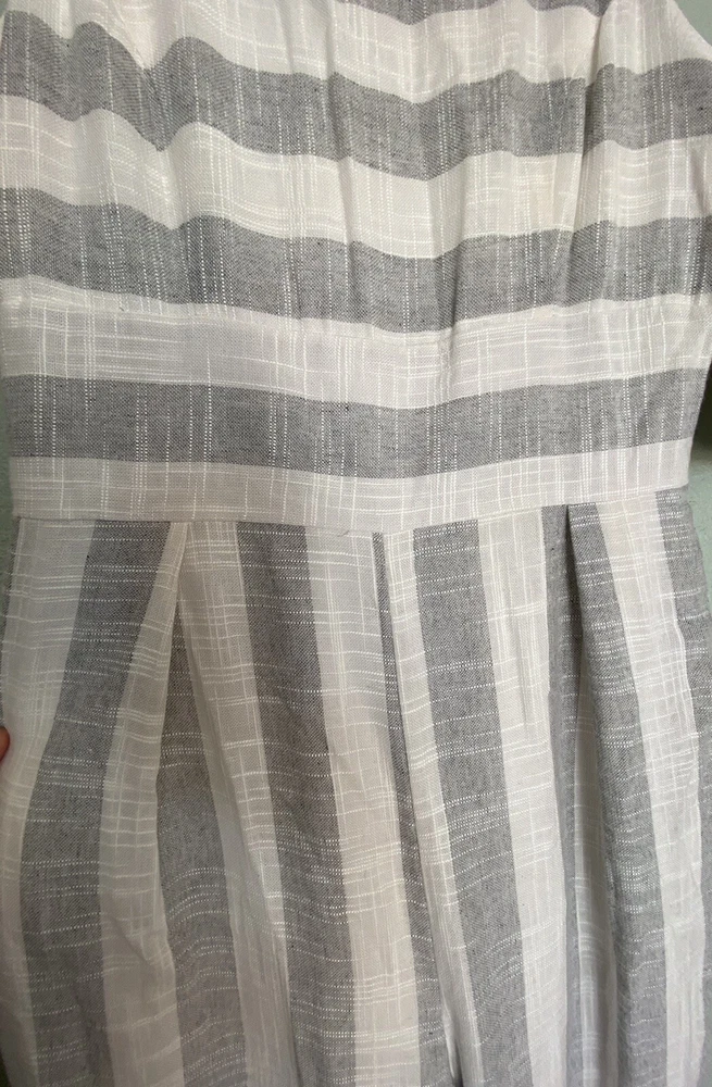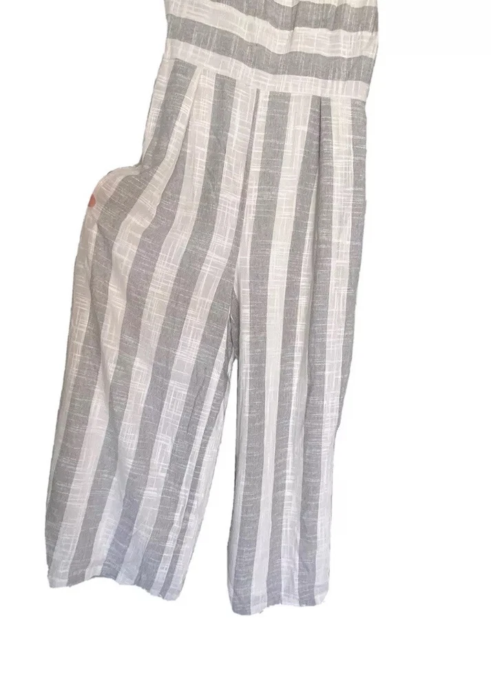 Sugar Lips Womens Linen Blend Jumpsuit Size Medium Gray Striped Sleeveless. New with tags. Pit to pit 17in. Waist 14.5in. Inseam 22in. Material does not stretch.