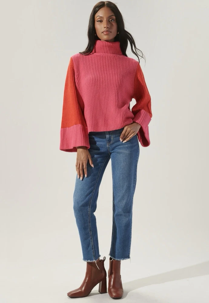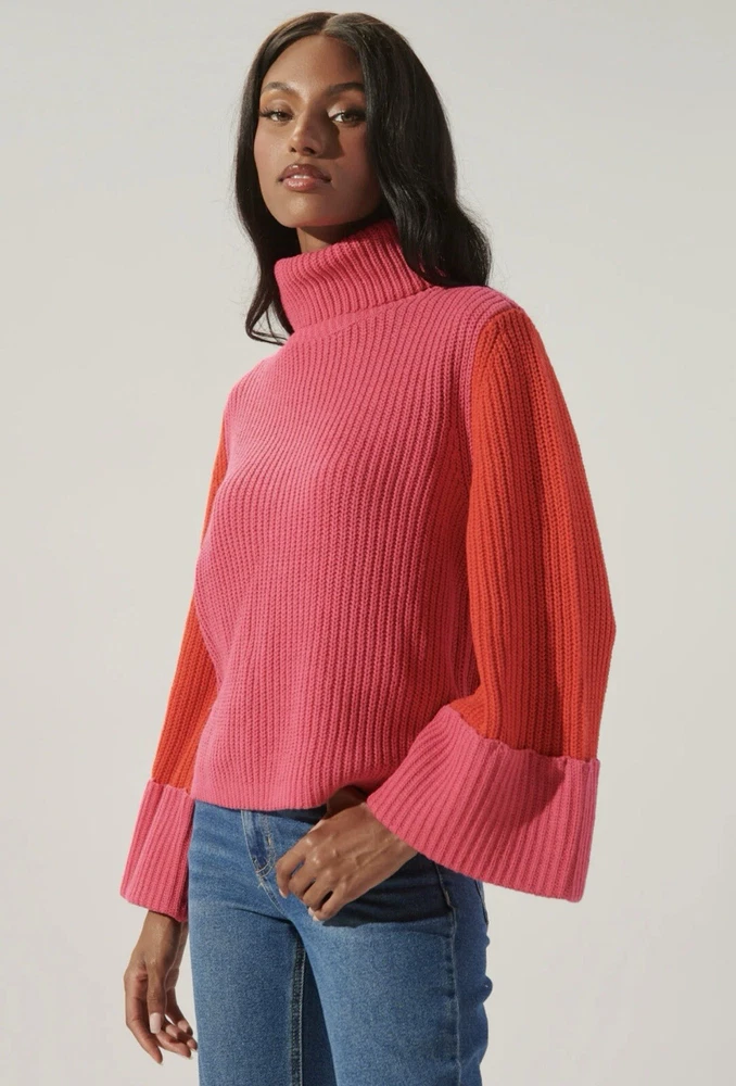 Sugarlips Jojo Colorblock Ribbed Turtleneck Sweater with Wide Cuffs Size XS