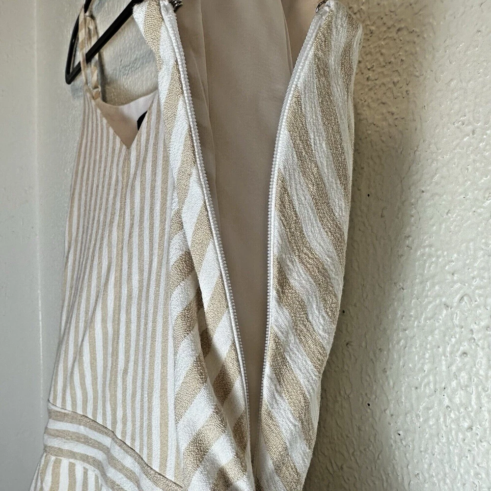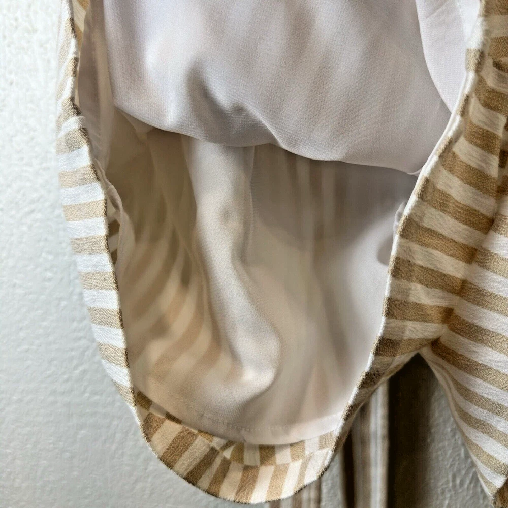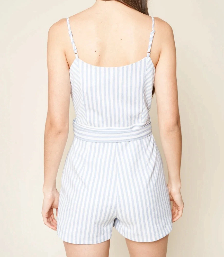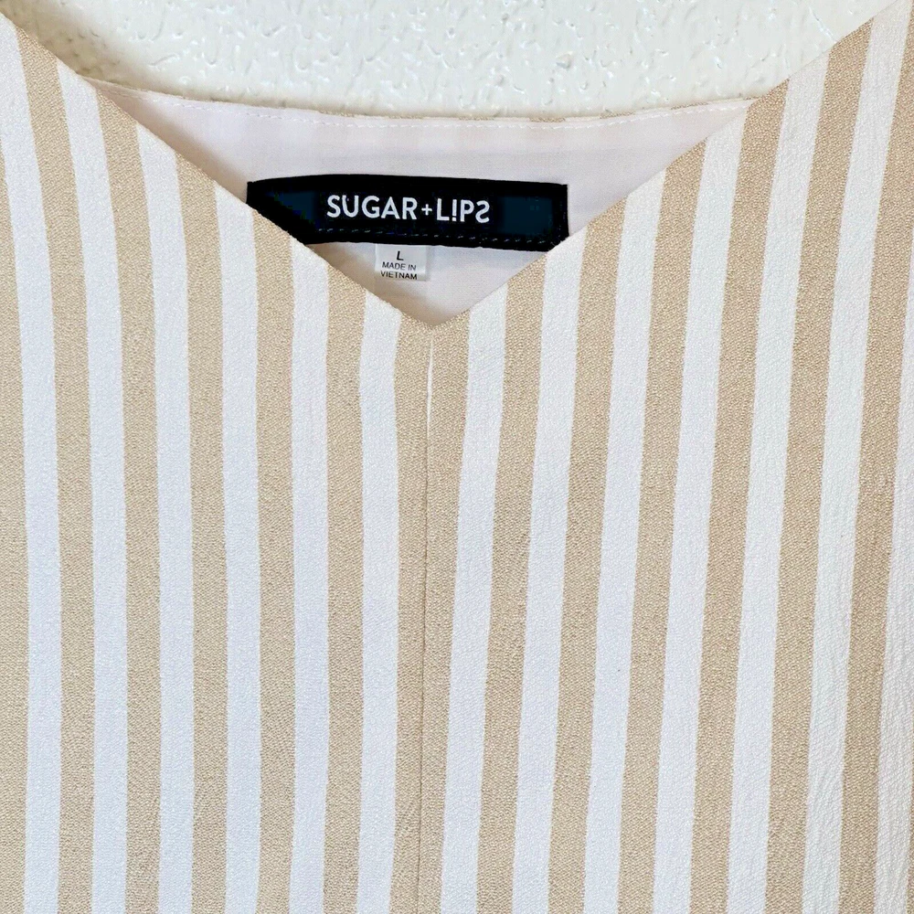 NOTE: STOCK PHOTOS ARE JUST TO SHOW YOU THE STYLE, COLOR ON THIS ITEAM IS WHITE AND BEIGE (CREAM) Elevate your wardrobe with this stunning Sugarlips romper! The striped pattern in tan and white, along with the V-neckline and adjustable straps, makes this piece perfect for any occasion, whether it be a casual day out or a party. The bow accents and belted waist add a touch of elegance to this one-piece romper, which is made of polyester and spandex for comfort and easy machine washability. This romper is perfect for juniors’ sizes and comes in a size L with a approximately 2-inch inseam. It is lined for added comfort and has a Invisible side zipper for easy wear. Whether you’re dressing up or down, this romper is a must-have for any fashion-forward woman. Approximate measurements Length: 30” (adjustable straps) Armpit: 20” Waist: 16” Rise: 13” Inseam: 2” STYLE:P2416ADR SELF:60%COTTON 35%POLYESTER 5%SPANDEX LINING: 96% POLYESTER 4%SPANDEX RN# 113853 RP$59 From free smoke home C6-1018-5