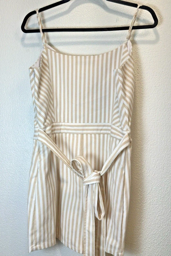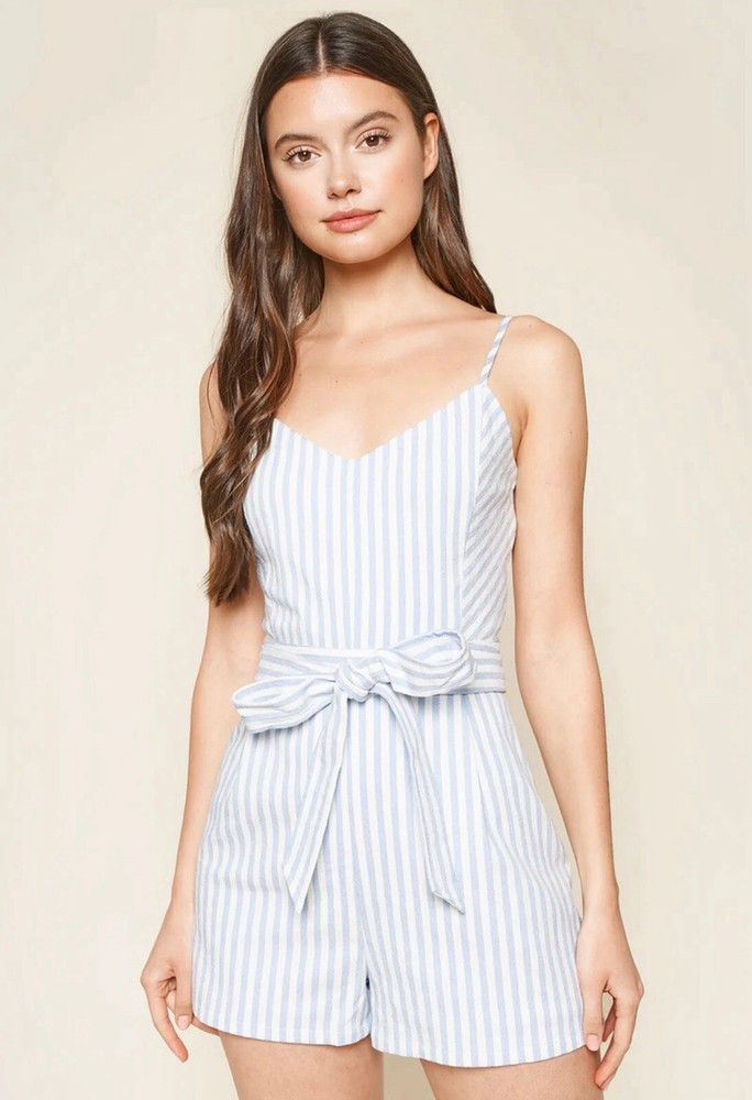 This romper is a must-have! The soft, breathable fabric feels amazing, and the bow-tie waist adds such a cute, flirty touch. The adjustable straps and V-neckline make it super flattering, while the tan and cream stripes give it a chic, versatile look. Perfect for brunch, dates, or even a night out—super comfy yet stylish. Love how easy it is to throw on and still look put together. Definitely a staple in my summer wardrobe!
