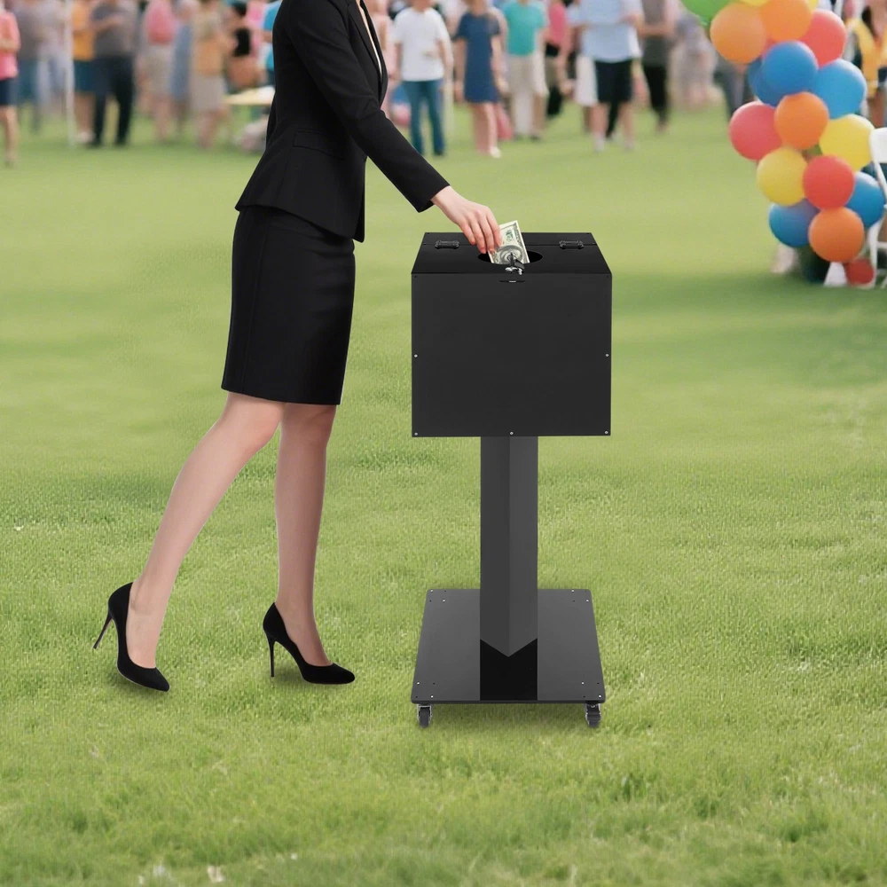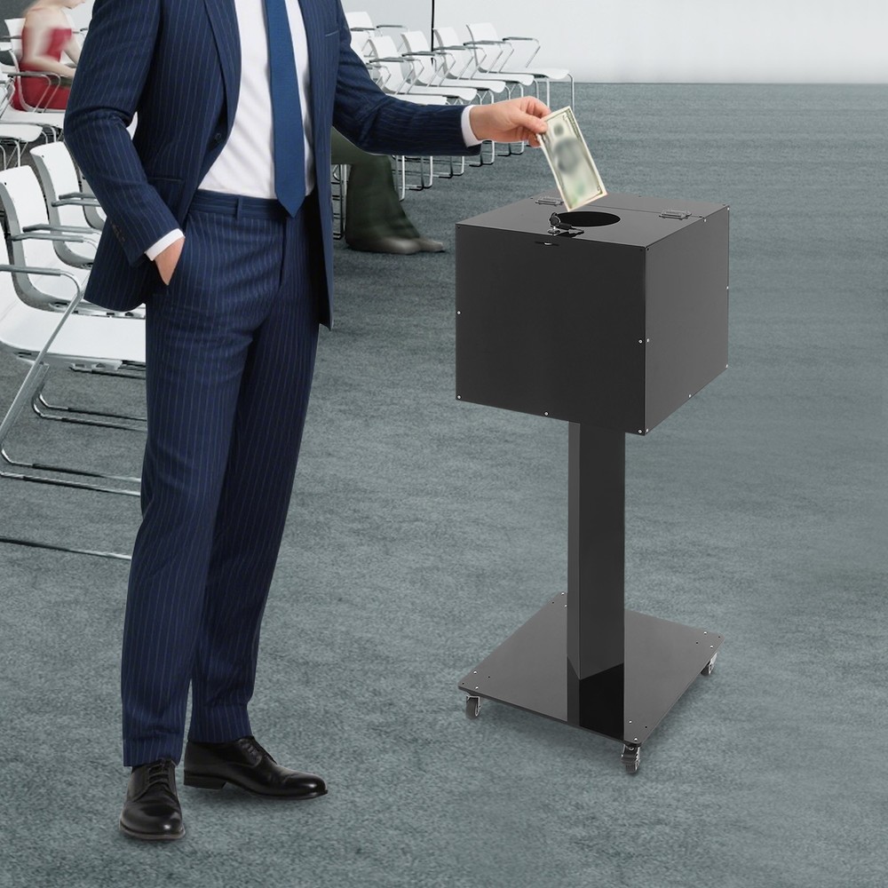 Come and buy now, enjoy a worry free life! Description Our ballot box features a floor-standing structure equipped with wheels, ensuring both stable positioning and flexible maneuverability. Its sleek exterior integrates into various event venues, elevating the space's aesthetic. Whether for collecting suggestion letters in commercial scenarios or gathering feedback at events, it proves to be an ideal assistant! Key Features Crafted for Endurance: Meticulously constructed from premium acrylic, this product is not easy to deform and is durable, engineered to withstand long-lasting daily use. Powerful All-rounder: This ballot box is renowned for its spacious interior and diverse applications. Whether used as a donation box to collect charitable contributions, a raffle box to hold lucky selections, or a family mailbox to convey warm greetings, it excels in every role. Moveable & Fixable with Ease: This product is equipped with 4 universal wheels (2 with brakes), not only providing convenient mobility but also ensuring stable fixation in the desired position, which allows for flexible adjustment of its position. Stand-Alone Design: Its stable floor-standing structure eliminates the need for extra support, allowing free placement in offices, exhibitions, stores, and other venues, integrating into different spatial layouts. Clean-Lined Generous Look: This product showcases a sense of graceful beauty through its simple color and smooth lines, allowing it to blend harmoniously into a variety of environments. This carefully crafted design highlights its aesthetic value, making it a striking addition to settings. Details Secure Lock Mechanism: The box features a lock to safeguard its contents, keeping it securely closed and deterring unauthorized access. The set of two keys lets you easily designate one as a backup, offering peace of mind in case the other is lost. Silky-smooth Edge: This product features a smooth edge design that not only gives it aesthetic appeal but also significantly improves safety during use, demonstrating extreme attention to detail and deep consideration for user care. Application It can be used as a suggestion box in offices, a ballot box for meetings or elections, a feedback box, an event registration box, a donation box in churches, a fundraising box for charity events, a raffle box, a competition box, a mailbox for families, and more. Specification Color: Black Style: Modern Hole Shape: Round Material: Acrylic Assembly Required: Yes Mount Type: Floor-standing Number of Keys: 2 Number of Wheels: 4* Universal Wheels(2 with Brakes) Box Size: 35*35*35cm/13.78*13.78*13.78in Total Product Height: 99cm/38.98in Package Size: 60.5*39*18cm/23.82*15.35*7.09in Gross Weight: 5.35kg/11.79lbs Net Weight: 4.7kg/10.36lbs Package Included 1* Ballot Box 2* Keys 4* Universal Wheels Other Accessories for Assembly Notes Please confirm the dimensions before purchasing. Please note this product does not include money, letters, or prizes. Please allow the slight color difference caused by the shooting light and 1-3cm error due to manual measurement, and make sure you do not mind before ordering. Payment Delivery details Terms of sales About us Contact us Payment We accept ebay payment 。 Fees such as import duties, taxes are not included in the item price or shipping costs. These charges are the buyer's responsibility. Delivery details Shipping: 2-9 working days to: USA Terms of sales We maintain high standards of excellence and strive for hundred percent customer satisfaction. Feedback is very important to us. We hope that you contact us immediately before you give neutral or negative feedback, so that we can address your concerns. It is impossible to address issues if we do not know about them! About us Your satis faction is our ultimate goal. We work hard to earn your trust and future business. Our certified technicians have tested each item before shipping. The unit comes with 1 year limited warranty on all manufacturing defects. a) If you receive a defective item, you may return it or ask for a discount. Please contact us within 14 days after you receive the package. b) What you returned must be intact and in its original packaging as re? u. Customer is responsible for shipping costs of the returned item. c) We will cover the cost of shipping back t with the shipping rate indicated in the registration page. We will send you a new unit or refund the full payment you paid. Thank you. Contact us Business Hour Business Hour: Monday To Friday: 8:30 AM to 5:00 PM (Beijing China time) Due to time zones, our reply to your questions may not be immediately. But within above working time, we will reply your email within 24 hours. If it's non-workdays, please kindly be patient and wait till Monday. Please contact us with ebay message. Please feel free to contact us if you have any questions. Monday To Friday: 8:30 AM to 5:00 PM (Beijing China time) Due to time zones, our reply to your questions may not be immediately. But within above working time, we will reply your email within 24 hours. If it's non-workdays, please kindly be patient and wait till Monday. Please contact us with ebay message. Please feel free to contact us if you have any questions. On Apr 1, 2026 at 19:47:58 PDT, seller added the following information: