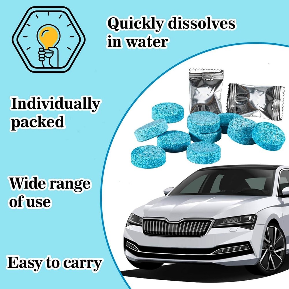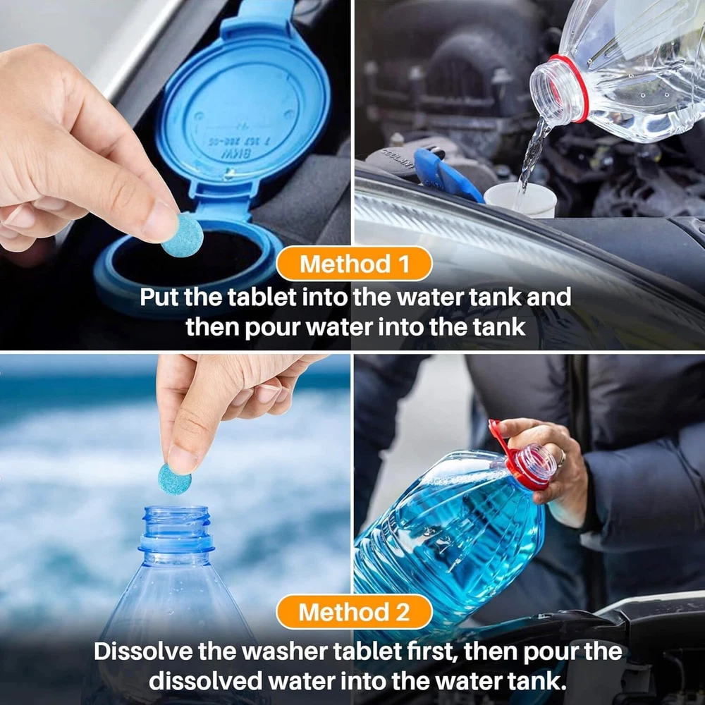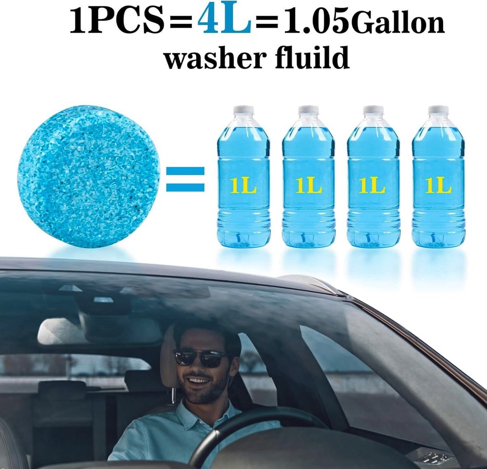 These windshield washer tablets are a game-changer! Just drop one in water, and you get a streak-free cleaning solution that tackles tough grime, bugs, and dirt effortlessly. Works in any weather, leaves no residue, and keeps visibility sharp. Super convenient and cost-effective—no more bulky jugs! Fast shipping too. Highly recommend for a spotless windshield every time!