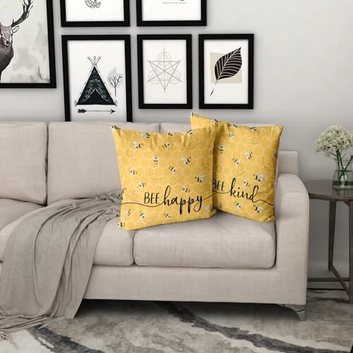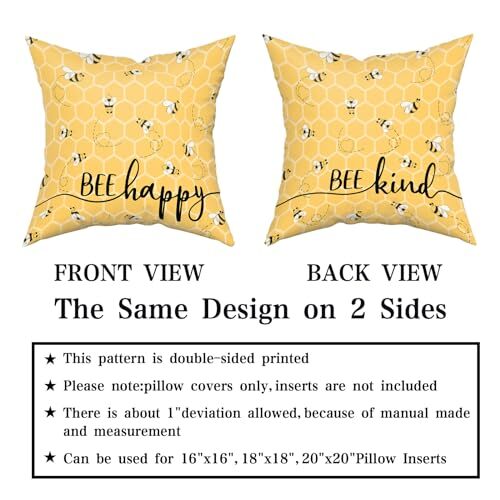 Summer Bee 18×18 Inch Pillow Covers Set of 2 Happy Kind Design