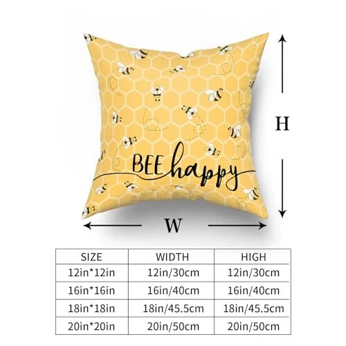 Return Policy Fast Delivery Trusted seller Summer Bee Pillow Covers Set of 2, 18"x18" Bee Happy Bee Kind Decorative Square Pillowcases, Yellow Honeycomb Farmhouse Throw Cushion Cover for Sofa Couch Indoor Outdoor Living Room Product Description Polyester Material: Our pillow cover is crafted from polyester fabric which is soft and comfortable texture.We focus on providing you with high-quality pillow covers. Performance: The 18x18 inch throw pillow covers include 2 sets with double sided printing. The hidden zipper design enables you to load and unload the pillow core easily without damaging the appearance. What’s more, the throw pillowcase is not easy to open line, deform and ball. Occasions: The pillowcases are suitable for any style of home, bed, sofa, car decor. The cushion case can be used in any room. No matter in bedroom, guest room, or children's room, RV, cottage, etc. We hope our pillow covers can bring you a good life experience and add sweet atmosp. Gifts: Throw pillows are comment in daily life, so a pillow covers is a great helper to protect pillow from getting dirty. It’s a nice idea to give throw pillow covers to your family, friends, kids, anyone else you like and even yourself as the perfect gift. Tips: Machine washable. The cushion coves are not easy to fade and shrinkage after each washing but you still wash it below 60°C. The price is only for the cover so that you will need to find inserts separately for proper use. If you have any problems about our product, please feel free to contact us! Shipping Returns Payment Shipping Shipping is FREE to all addresses other than APO/PO boxes in the lower 48 states. All our stock ships from US-based warehouses. Shipped via USPS or UPS (depending on location and package weight) Unless stated otherwise, all orders will ship within 24-72 hours of your payment being processed. Check our feedback to see the great reviews of FAST shipping we offer. Returns Seller does not accept returns Payment We currently accept payment via eBay managed payments only. Once payment is cleared, we will dispatch your shipment within 1-3 business days. Please refer to the "Shipping" tab for more information regarding shipping speed to your destination.