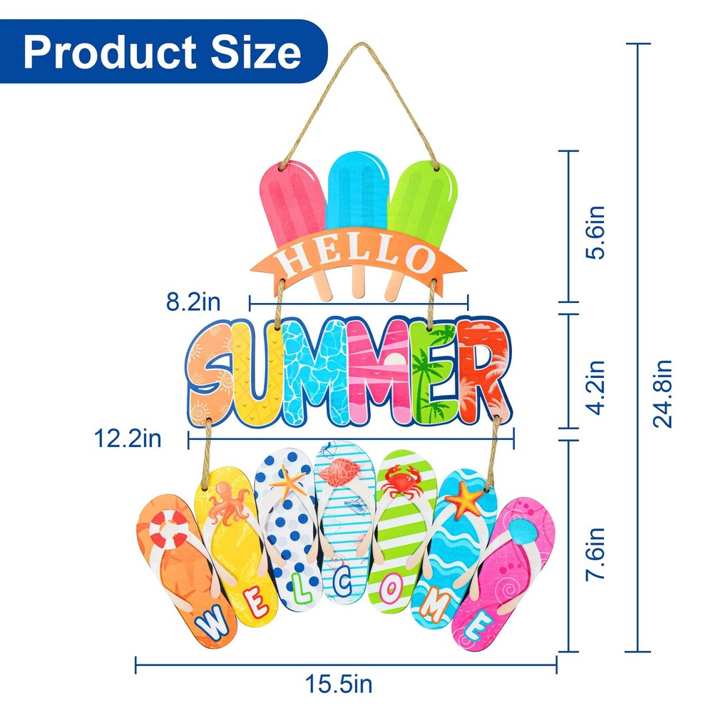Stylish appearance attracts people's attention. Superb quality extends service life. Perfect addition to your space. Feel free to decorate your summer home party . Package includes: 1x Hello summer door sign Material:wood Size: measuring 25 x15 inches Color:as picture shown NOTES: 1.Manual measurement, please allow slight errors on size. 2.The color may exist a slight difference due to different screen displays. Three Part Wreath:summer decorations for home consist of three parts of summer ornaments. The first part is three colorful ice cream. The second part is wooden “SUMMER” sign cut-out embellished with Hawaiian style. The third one is wooden plate of summer beach slippers with a word called “WELOCME” Fine workmanship: summer welcome sign is made of wood, equipped with precision UV printing, waterproof and durable, suitable for indoor and outdoor use Charming Appearance: Combining bright colors and vibrant pieces, this farmhouse summer decor uses rich elements of beach slippers, shells,crab,waves, swimming ring, and more. Decorate the front door, entry wall or the wall outside for a charming summer day Delightful Sign: this summer welcome wooden sign is designed with a strong summer beach atmosphere.Bringing the feeling of cool summer,just to welcome the arrival of summer and enjoy the sun Summer Gifts: Summer came quietly. It's time to dress up your door. This welcome door sign will be a great addition to a hawaii theme party. Perfect for a summer gift to your parents, friends, teachers, colleagues to show your warmth