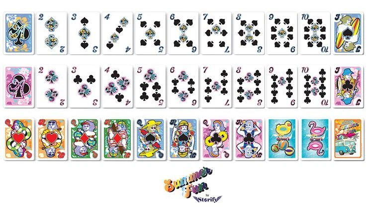 Please note: We only sell genuine playing cards from bonafide manufacturers. The Summer Fun Playing Cards is the 1st series of "fun" playing cards limited to 1000 decks only with numbered seals on each deck. After years of lockdown, people can finally resume outdoor activities and travel, waterproof cards are always good buddies to carry with! The design is colorful and fun, with uniquely designed pips and court cards. Printed by Kingstar playing cards with premium PVC, these decks are designed to last and playable alongside your favorite water sport or summer activities. Standard 52 cards deck Custom pips Unique summer themed courts 2 Jokers Printed by Kingstar Playing Cards with premium PVC material Number seals on the tuck case Limited to 1000 decks only ____________________________________________________________________________________________ Are you ready to elevate your poker game with original playing cards? Visit our store today to browse our selection of authentic decks and start playing like a pro. Remember, when it comes to poker and other card games, we only sell original cards from genuine sources. Experience the difference for yourself and take your gameplay to new heights with premium quality playing cards.