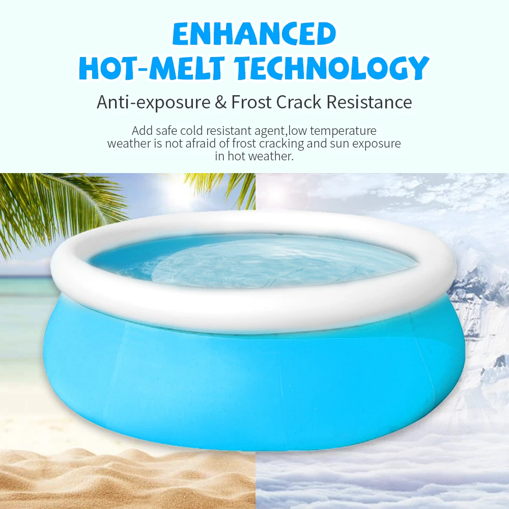 💦Practical & Portable: Our pools for the backyard are easy to assemble, practical, and space-saving, The outlet is designed for easy drainage, you can build a pool in your yard/garden anytime you want to play, clean and sanitation, When you don't need to use it, just drain the pool through the drain and then fold it up for storage, easy to use, so just enjoy your summer days, create an unforgettable and cool memory with your families and friends! 💦Environmental Protection Materials: Our swimming pool adopts a three-layer composite mesh design, made of high-quality environmental protection PVC interlayer, Non-toxic material, anti-aging, anti-ultraviolet and anti-corrosion, safety and durable, harmless, and environmentally friendly. 💦Family-sized pool: 10ft x 30in a swimming pool can hold 5~6 kids, Perfect for staying at home with your family and kids playing in the water to get rid of the summer heat. 💦Easy to Set: Our above-ground pools are easy to set up, just flatten the bottom and then fill the inner circle of the pool with an inflator, easy to operate, super convenient. 💦Note: Do not place the swimming pool in the sand, mud, or any soft or loose soil conditions. Number of people: 5 to 6. Product description: Fast US Shipping! Such a convenient inflatable pool you have worth to have it. Want to enjoy a fun-filled summer at home specially for families with younger children! Fits Anywhere In Your Home: Ideal for deck, backyard, garden or back porch. Name: Round inflatable swimming pool. Color: Blue. Capacity: (90%)3638 L,fits up to 5 to 6 people. Package contains: 10ft * 30in Inflation pool x 1 Air Pump x 1 Filter Pump x 1 Repair Kit x 1 How to use it: 1.Clear the horizontal space in the yard, if possible, put a large cloth/tarpaulin under this pool; 2.Inflate the top of the pool; 3. Pour 2 cm of water to smooth the bottom of the kids pool without wrinkles; 4. Pour water into the pool, smooth out the wrinkles around the pool and finish.