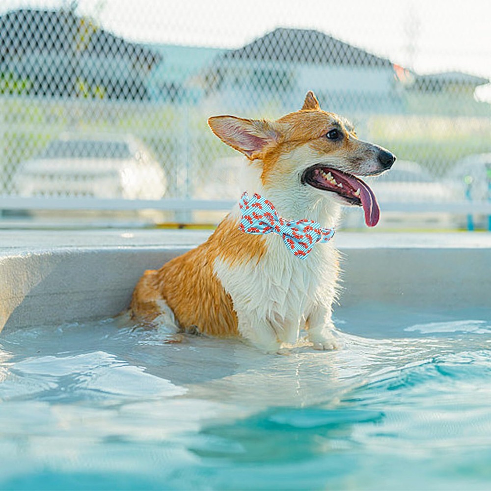 Summer Stripe Adjustable Blue Dog Collar for Large Pets Bow Design