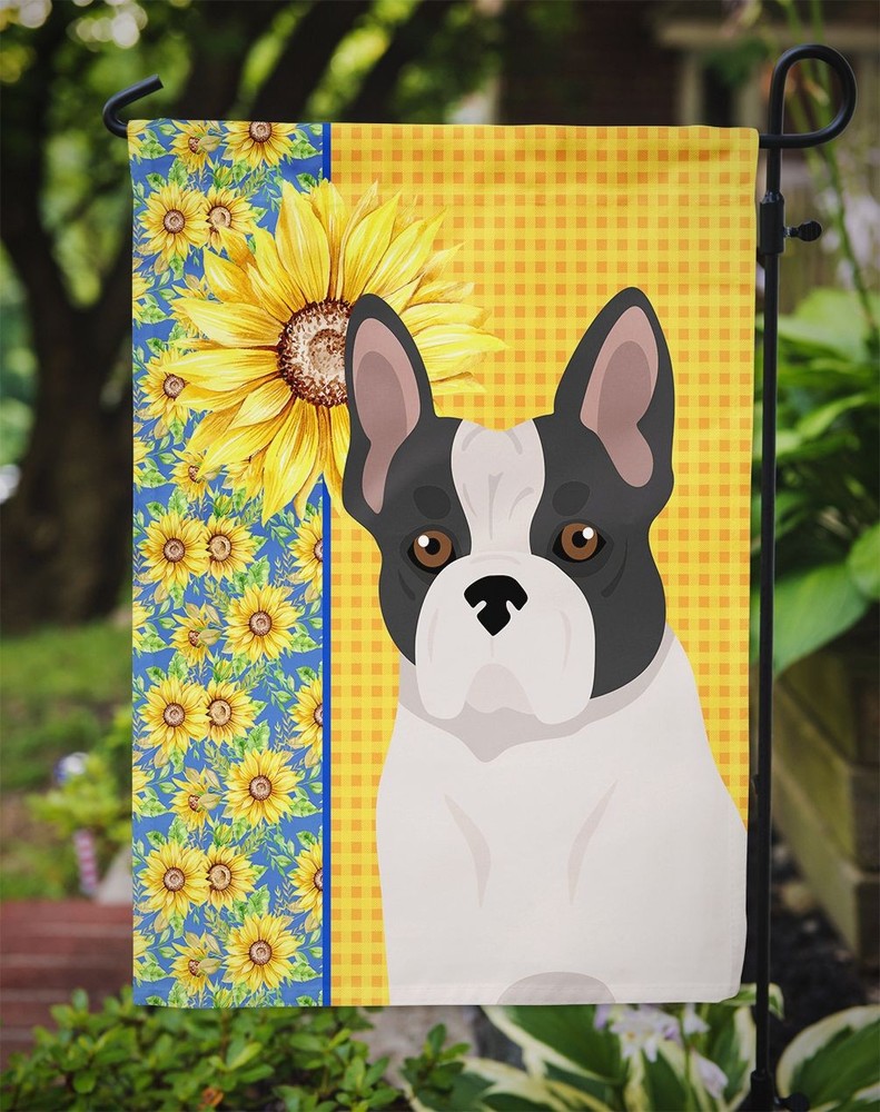 Thank you for visiting our Garden Flag listing. We now have over 20 practical, useful, and quality items featuring your favorite dog breeds. Click on the Sellers other items link above and then type in your favorite breed in the search bar. Now over 300 breeds plus free shipping. Highlights Vibrant Outdoor Decor: Elevate your garden, patio, or yard with Caroline's Treasures Garden Flag, featuring stunning artwork that adds a pop of color and personality to your outdoor space. Premium Quality and Durability: Made from two pieces of thick, double-sided polyester fabric, this 2-ply garden flag is water-resistant, weatherproof, and designed to withstand wind, rain, and snow, ensuring long-lasting beauty. Readable on Both Sides: With correctly readable words on both sides, this garden flag offers a delightful visual experience from any angle, making it a captivating focal point in your outdoor decor. Made in the USA: Proudly crafted in the USA, Caroline's Treasures Garden Flag is a symbol of exceptional quality and craftsmanship. Enhance your outdoor setting with this high-quality flag and enjoy its vibrant charm for years to come. French Bulldog gifts,French Bulldog collectibles Specification Brand:Caroline's Treasures Details Garden Flag featuring breed specific French Bulldog artwork. Add this colorful Garden Flag to decorate for Summer, This Garden Flag is from Caroline's Treasures collection Summer Sunflowers. Enhance the beauty of your garden, patio, or yard with Caroline's Treasures Decorative Garden Flag, proudly made in the USA. Crafted from two pieces of thick, double-sided polyester fabric, this 2-ply garden flag is designed to withstand various weather conditions, making it water-resistant and weatherproof. Featuring correctly readable words on both sides, this garden flag offers a delightful visual experience from any angle. With its heavier weight, it stands out among other garden flags, ensuring stability and durability even in wind, rain, and snow. Measuring approximately 11 1/4 inches by 15 1/2 inches, this flag allows you to personalize your outdoor decor. It comes with a 1 1/2-inch sleeve sewn in, allowing easy attachment to any standard garden flag stand or garden size porch hanger (sold separately). Make a statement in your outdoor space with Caroline's Treasures Decorative Garden Flag, a vibrant and high-quality flag that adds color and personality to your surroundings. Proudly made in the USA, it's a symbol of quality craftsmanship and attention to detail. This Garden Flag is from Caroline's Treasures Dogs category of products.