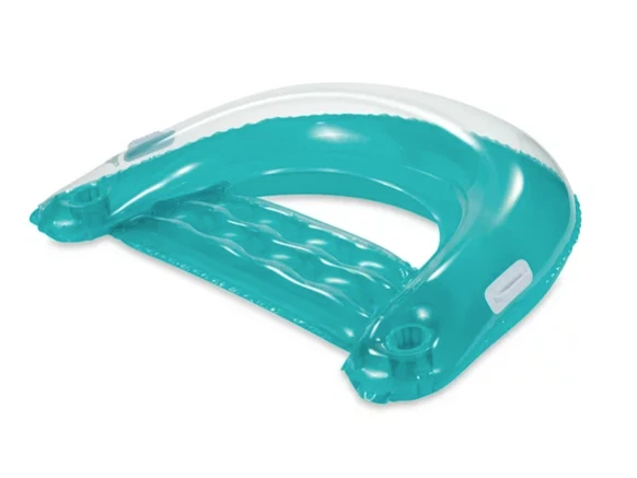 The Summer Waves Chill-Out Lounge Pool Float offers the perfect way to recline on water. This easy-to-inflate floatie features a comfortable back support, and 2 heavy-duty grip handles for a secure ride. It also comes with 2 convenient cup holders to keep your refreshments right by your side. The inflatable lounge is made for all genders, and is suitable for adults. You will never want to leave the pool while being on this exclusive lounge. Summer Waves Inflatable Chill-Out Lounge Pool Float, Blue, for Adults, Unisex: Inflatable water chair float for pools, beaches and lakes 2 heavy-duty handles for secure lounging Comfortable cushioned backrest and armrests 2 cup holders to keep your drink handy Attractive transparent top and tropical colors Durable, puncture-resistant materials Repair patch included Approximate deflated size: 60" x 39" (1.5 m x 99 cm) Approximate inflated size: 48" L x 37.5" W x11.5" H (1.2 m x 95 cm x 29 cm) Age: Adults