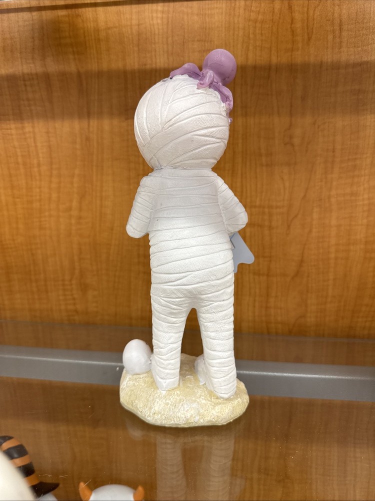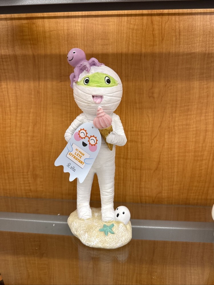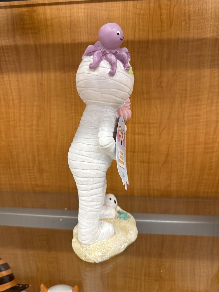 The SummerWeen Mummy With Ice Cream Cone & Octopus Head figurine is a unique and whimsical decoration perfect for Halloween. Made by the brand Here For Spooky Summer, this figurine features a mummy holding an ice cream cone and an octopus head, adding a fun and playful touch to your seasonal decor. The combination of spooky elements with a touch of sweetness makes it a standout piece for your Halloween display.