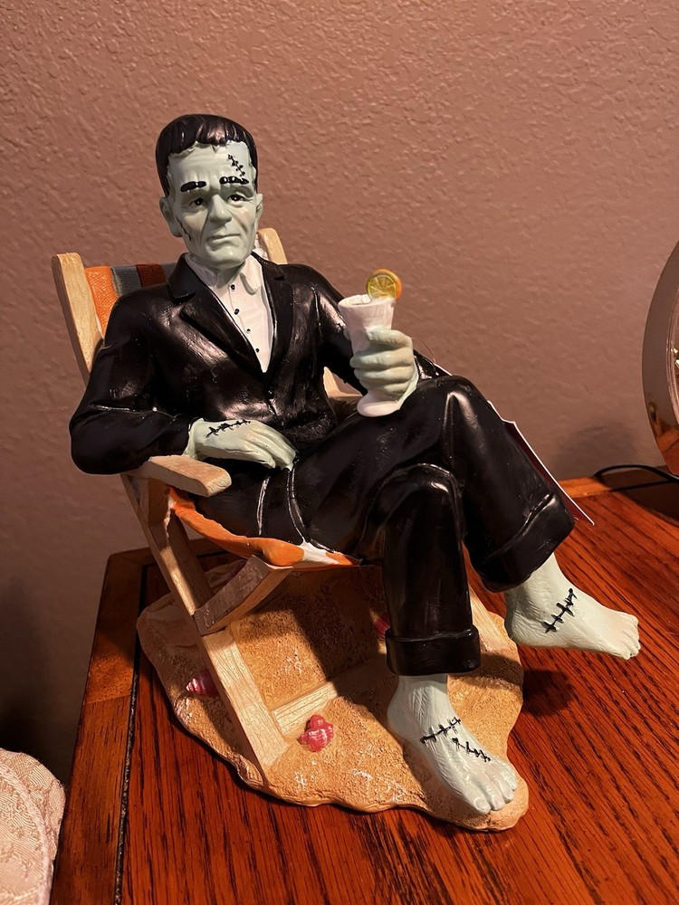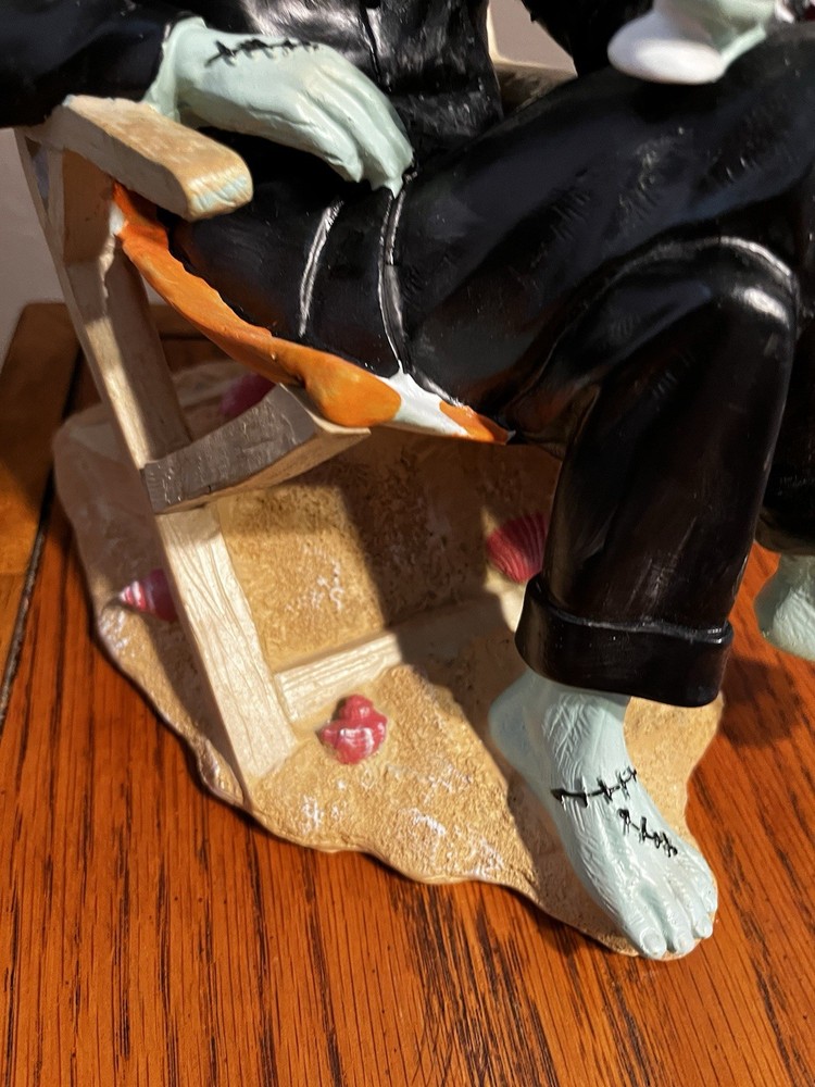Summerween Frankenstein Beach Statue Lounging with Drink