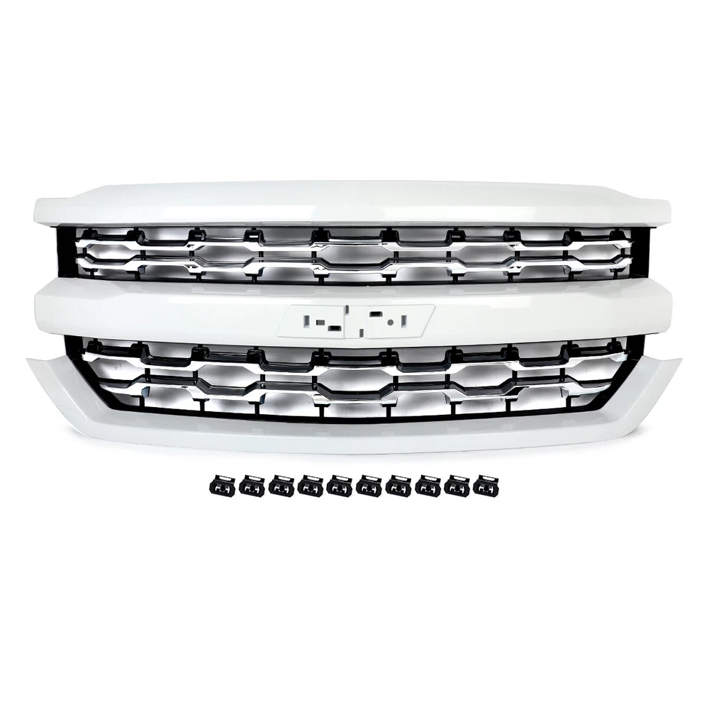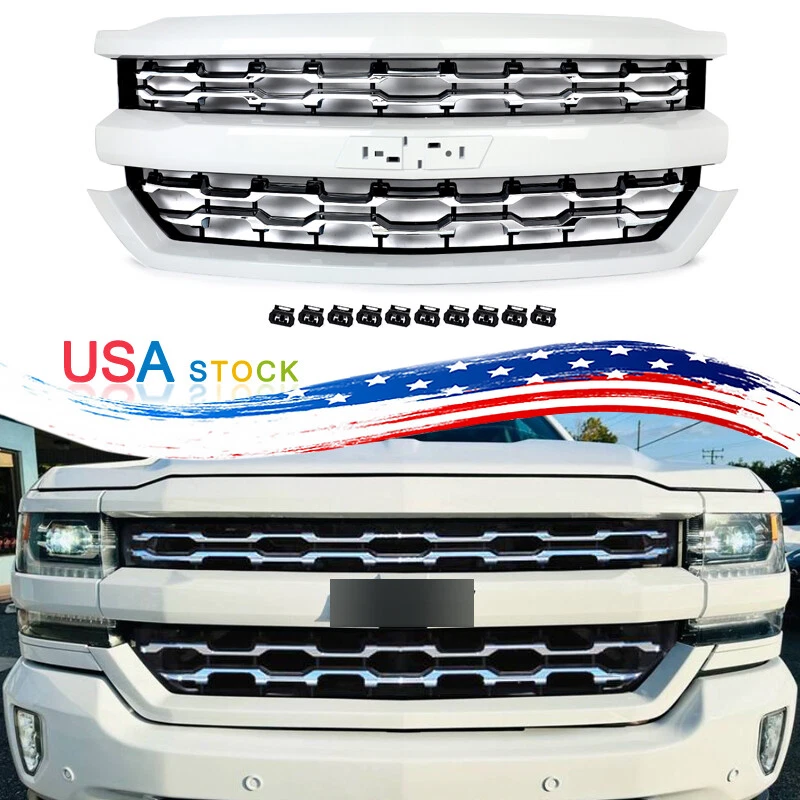 Summit White Front Grille Grill Assembly For 2016-2018 Chevy Silverado 1500 LTZ We appreciate you place an order, If you are satisfied with the item and our total service, Please take a moment to leaving us a POSITIVE FEEDBACK and perfect " 5 STAR " scores, If you have any problem with your purchase,shipment,return/exchange,or any others, Please contact us firstly,so that we can satisfactorily address your concerns, We will give you our best item and service. Specification: Condition: 100% Brand New Color: Summit White+Chrome Style: LTZ Style Material: High Quality ABS Plastic Placement on Vehicle: Front Surface Finish: Painted Size: 138*24*56cm(54.33"*9.45"*22.05") Gross Weight: 15.4LB (7KG) Features: -Easy install and durable use. -Great quality and great fitment. -100% brand new and high quality guaranteed. -Strict quality control standards to build and test. -Durable,helpful and so practical,enhance the looking of your car. Fitment: Fit for Chevrolet Silverado 1500 2016-2018 Package Include: 1x Front Bumper Grille(Without Emblem) Note: -Please check the size measurement chart carefully before making payment. -Please allow 0.5-1 inch difference due to manual measurement.(1 inch=2.54cm) -The color of the actual items may slightly different from the listing images due to different computer screen, thanks for your understanding. -Instruction is not included. -Professional Installation Recommended. 1.We Accept Payment Through Paypal Only. 2.The eBay members must fulfill the requirement.(PayPal verified and confirmed address; the account holder must be the receiver). 3.Please complete your payment within 2 days after the item is won.If you have difficulty completing your payment within the required time, please contact us.Non-Pay Dispute will be filed against your account after the 2th day. 4.Our price does not include Duties,Value Added Taxes,Customs Clearance Fees,and other charges. These charges are the buyer's responsibility.Please check with your country's customs office to determine what these additional costs will be before bidding/buying. 5.The buyer needs to pay for the above fees in case that occurred for certain goods.If the parcel returns back to us due to the buyer refuse to pay those fees,we would not send the parcel again unless the buyer completes those fees and pay all the return and resend cost.The buyer can not cancel the order or request a refund due to this reason. 1.Free Shipping with FedEx/UPS/USPS to the Mainland 48 states ONLY 2.PO Box,AK/HI/PR and APO/FPO address will not be accepted. 3.Package will be shipped to your eBay shipping address within 48 hours(except for weekend and public holiday) after payment is cleared. 4.Payment cleared/received on Friday will be shipped on the next business days (Monday or Tuesday) 5.Order is typically shipped in 1-2 business day after payment is completed. Shipping confirmation with tracking number will be sent to your eBay email address when your order is shipped. Please note that we do not ship orders on Saturdays,Sundays,and national holidays. 6.All our items will be shipped to the address you submit, please confirm your address on before you bid or purchase. 7.Shipping time may vary depends on your area. Delivery may be delayed due to extreme weather or special circumstances. Please wait patiently. -All items sold by us are being described to the best of our abilities,as accurate as possible,and with utmost conscientiousness on our part.However,to avoid any potential oversights,we respectfully request your assistance in helping us to make this a mutually satisfactory transaction by THOROUGHLY reviewing item description and photos,and asking all questions PRIOR TO BIDDING. -We stand behind the quality of all of our products.All products are double inspected before stocking and dispatching.However,sometimes mistake may slip by and the product may get damaged during the process of delivery.If such trouble occurs to you,please take a minute to refer to the following instruction. -If the package arrives at your location with obvious shipping damage (including broken envelop,empty package and etc),please refuse the shipment. -If you find the item is defective after you accept the shipment,please save everything that is attached in the package,including all the documents,and contact us immediately,either through eBay message or email address. -You should state your item ID,item title and what the damage is clearly in your email.And please be advised that digital photos must be attached to the email you send. -And please bear in mind that you should contact us within 3 days since the day you receive the package,or it will be your own responsibility to take the lost of the defective item. Welcome to our Ebay store. We are professional of selling premium quality auto parts. All kinds of modified and aftermarket body parts for BMW,Benz,Ford,Audi,Jeep,Chevrolet and so on. For more details,please contact us. Thank you for your business. Certain images and/or photos used in this template are the copyrighted property of Macmillan digital publishing USA and are used with permission. Specification: Condition: 100% Brand New Color: Summit White+Chrome Style: LTZ Style Material: High Quality ABS Plastic Placement on Vehicle: Front Surface Finish: Painted Size: 138*24*56cm(54.33"*9.45"*22.05") Gross Weight: 15.4LB (7KG) Features: -Easy install and durable use. -Great quality and great fitment. -100% brand new and high quality guaranteed. -Strict quality control standards to build and test. -Durable,helpful and so practical,enhance the looking of your car. Fitment: Fit for Chevrolet Silverado 1500 2016-2018 Package Include: 1x Front Bumper Grille(Without Emblem) Note: -Please check the size measurement chart carefully before making payment. -Please allow 0.5-1 inch difference due to manual measurement.(1 inch=2.54cm) -The color of the actual items may slightly different from the listing images due to different computer screen, thanks for your un