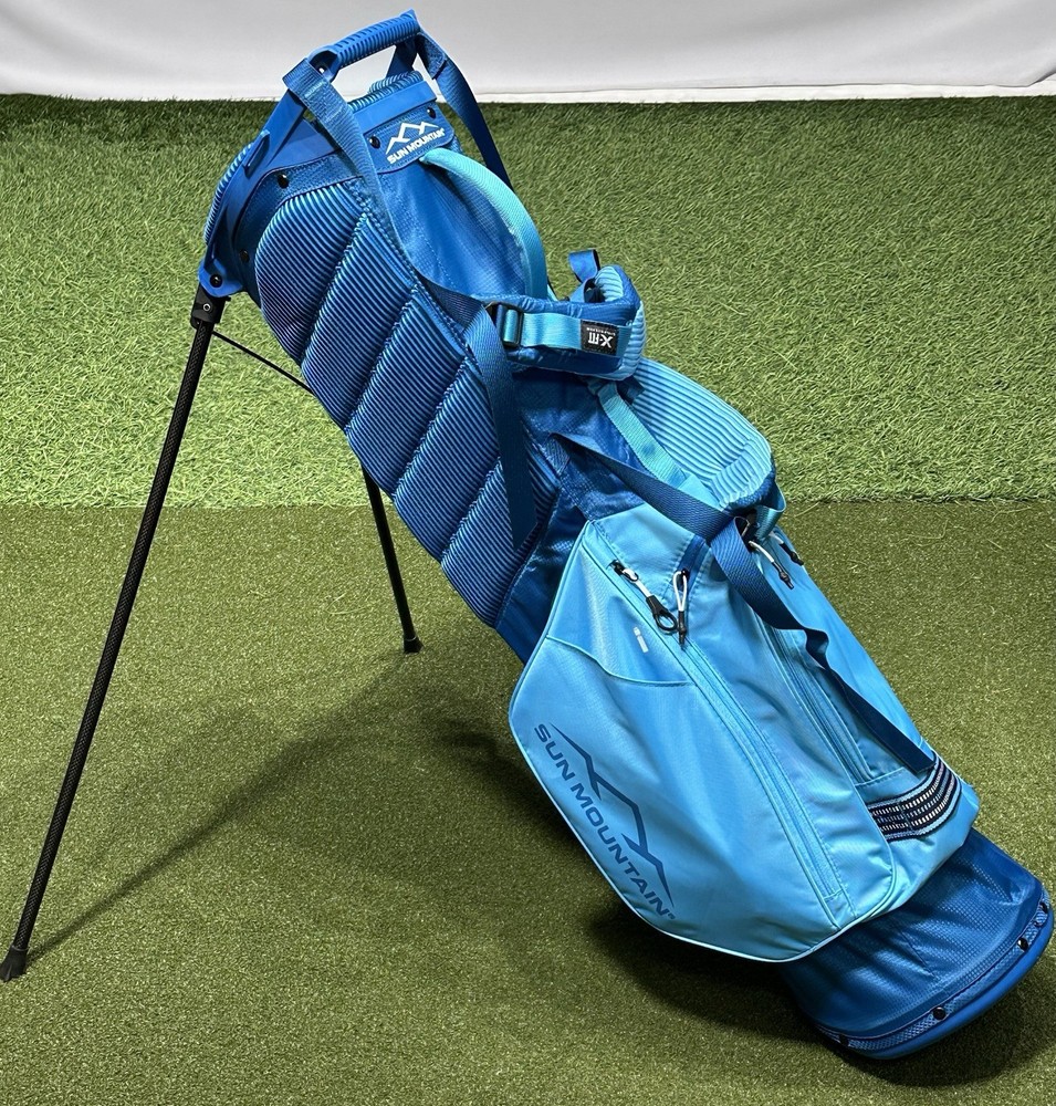 We are a reputable golf company that has been in business in St. Louis, Missouri since 1975. We have been doing this for 40 years because we do things right the first time. WE HAVE THE FASTEST SHIPPING ON EBAY! Don't believe us? Check out our Feedback. If you have questions, please feel free to ask. As always, thank you for looking. Sun Mountain 2.5+ Stand Golf Bag COLOR: Surf/River STYLE: Stand Bag DIVIDERS: 4-Way Divider CONDITION: NEW with Tags (10/10) RAIN HOOD: Included! 2.5+ Stand Bag Designed for the avid walking golfer, the 2.5+ redefines the features that can be offered in an ultralight golf bag. It has contoured, high-density foam shoulder straps for carry comfort, a roomy, 7.5" top and six pockets including a beverage pouch. All of this and it still weighs under three pounds. Features: Six pockets include a full-length apparel pocket; a velour-lined valuables pocket; a ball pocket with two-way zippers; a beverage pouch; and multiple accessory pockets Lightweight, high-strength-to-weight plastic top with a comfort-grip handle X-Strap System is easy to get on and off and works well as a single strap for short carries Four full-length dividers Integrated, comfort hip pad Ultra-lightweight, highly durable carbon fiber legs Matching rainhood included Top Width: 7.5" Pockets: 6 Strap Type: X-Strap Dual Strap System Dividers: 4 Bag Weight: 2.9lbs