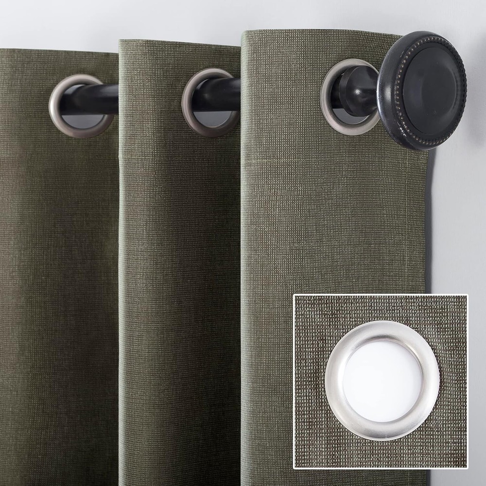 Sun Zero Columbia Thermal Energy Saving 100% Blackout Grommet Curtain 50" x 108" Sun Zero blackout technology blocks out most unwanted light while enhancing privacy. Thermal properties help keep summer heat and winter chill out of your home. Energy-efficient design reduces energy lost through your windows by up to 40%. Noise reduction. Built-in metal grommets fit curtain rods up to 1.5" in diameter. Color - Olive Size - 50" W x 108" L