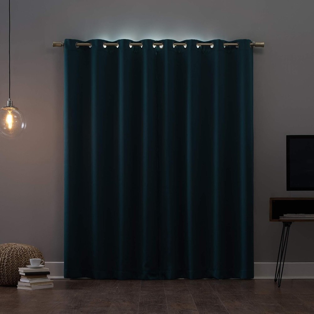 Sun Zero Nordic Theater Grade Extreme 100% Blackout Grommet Curtain (2-pack) Color: Teal New Size: : 84"L x 52"W (2 panel) About this item Chenille Blackout Design: Features a solid blackout grommet curtain that blocks light effectively Nordic Style: Teal colored curtain with a draped style creates a relaxing atmosphere 52 x 84 Inches: Generous size provides coverage for a large window space Polyester Fabric: Durable and easy to clean material ensures long lasting use Machine Washable: Conveniently clean curtain panels without special care
