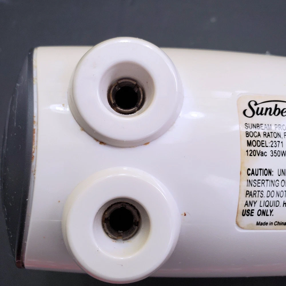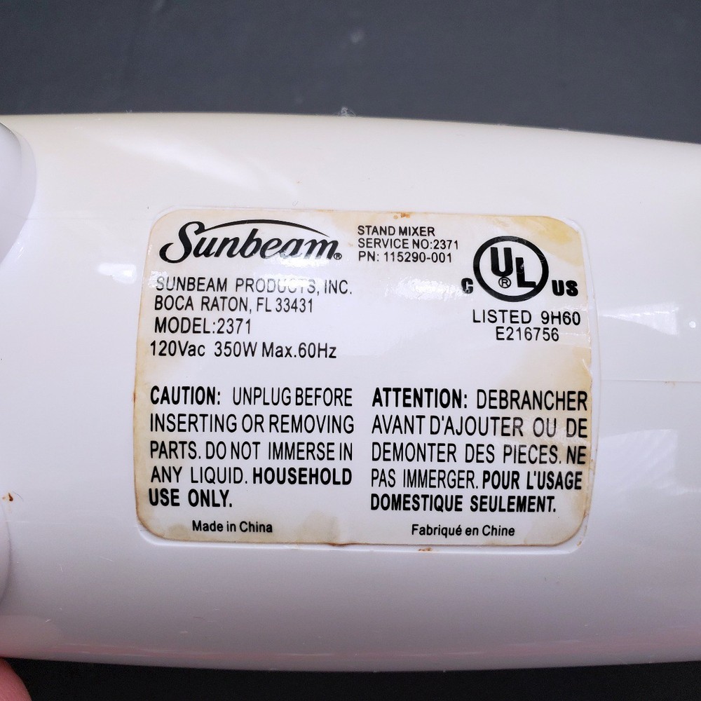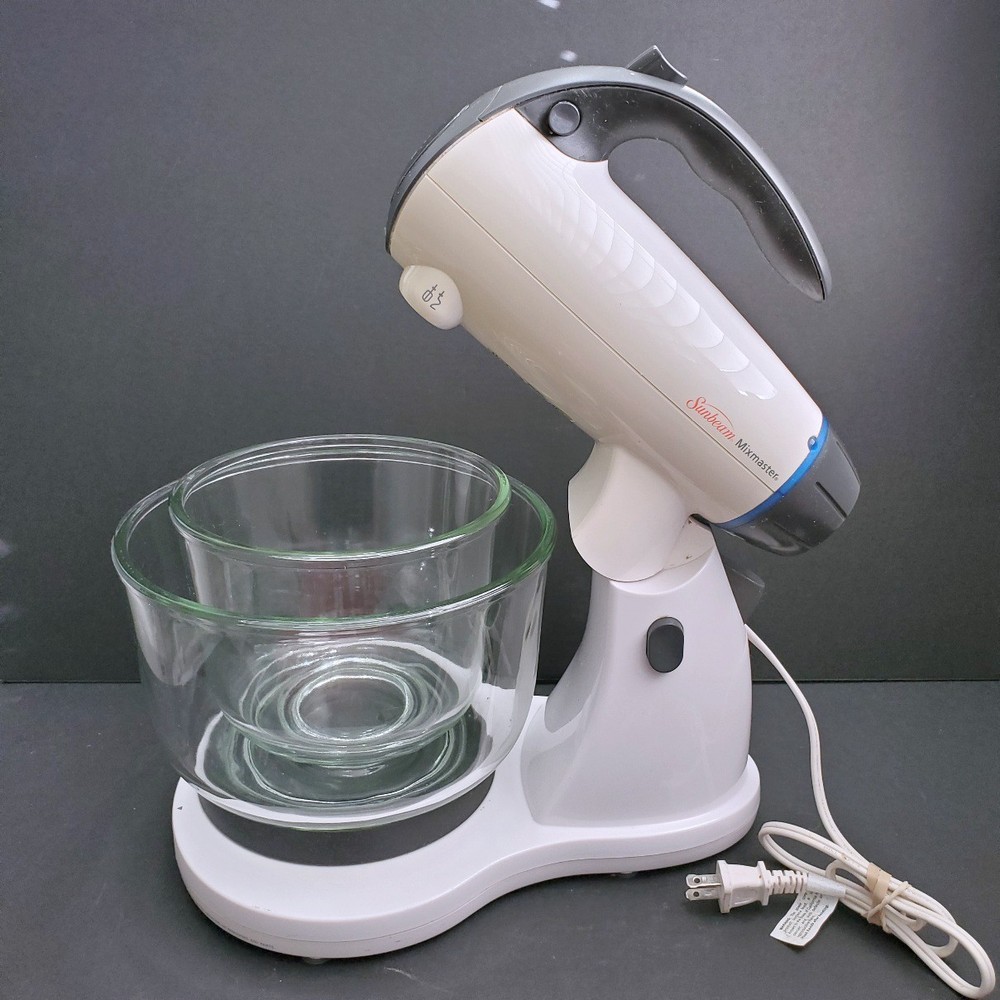 Sunbeam 2371 Mixmaster 12-Speed Stand Mixer Two Bowls, Beaters Hooks & Wisk Included is the following: - 1 base that has works great - 12 speeds - 1 glass bowl 7" - 1 glass bowl 9" - 1 pair of Beaters - 1 pair of Hooks - 1 Wisk This Mixmaster is very clean and the glass bowls have NO chips or cracks. Will be packed very well and marked as Fragile.