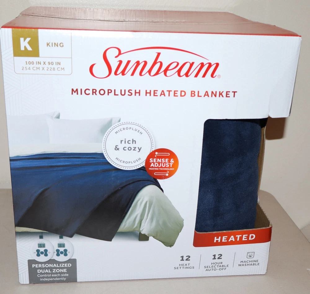 The Sunbeam King Size Electric Microplush Heated Blanket in Blue offers cozy warmth and comfort in the bedroom. This blanket features dual digital control for personalized temperature settings, making it perfect for couples with different preferences. Made of soft microplush material, this heated blanket provides a luxurious feel while keeping you warm during colder nights. Ideal for adding extra warmth to your bedding, this Sunbeam blanket is a practical and stylish choice for creating a comfortable sleep environment.