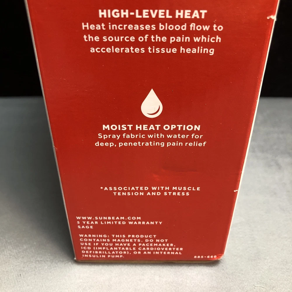 Power Source:Electric, Power PlugBrand:Sunbeamgtin13:053891134071MPN:#198569UPC:053891134071Department:UnisexMaterial:FabricCountry/Region of Manufacture:ChinaManufacturer Warranty:5 YearsType:Electric Heating Wrap