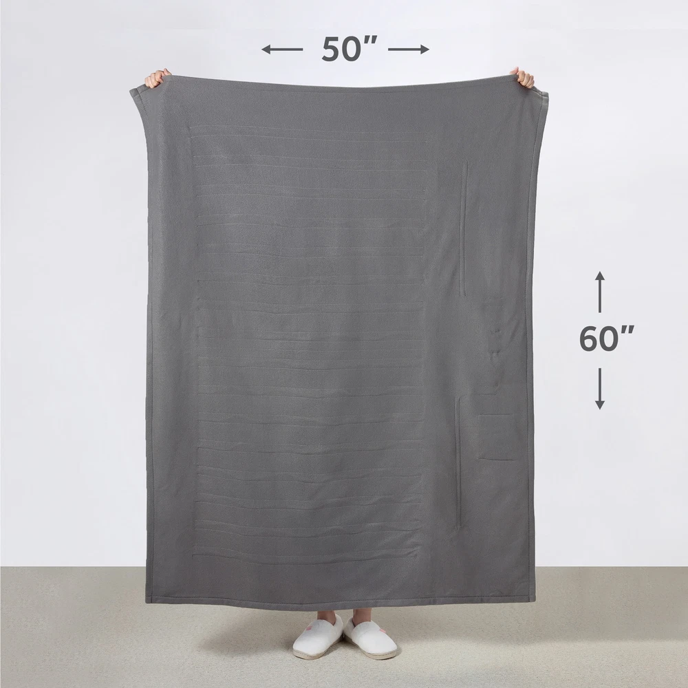 Sunbeam Gray Fleece Electric Heated Throw wraps you in comfy, cozy warmth on chilly nights. Indulge in the cozy fleece fabric that keeps you toasty while you runwind. The stylish 50" x 60" electric blanket makes a great accessory while relaxing on the couch, bed or your favourite chair and the gray color complements any décor. The throw features an easy-to-use push-button controller with 4 adjustable heat settings, letting you find the perfect temperature. Plus, the 4-hour auto shut-off function for added safety and peace of mind. The premium heated wires are equipped with advanced technology to ensure continuous even heat distribution. For easy care, simply detach the controller and machine wash and dryer safe. It remains soft wash after wash. Sunbeam is an American brand trusted for over 125 years in electric home appliances. All Sunbeam electric bedding products are ETL certified. Warm up with ease: Simple push-button controller Customizable comfort: 4 heat settings: warm, low, medium, high Safety first: 4-hour auto shut-off, overheat protection, certified: cETLus, OEKO-TEX Comfy and cozy material: Soft fleece fabric, ideal size to snuggle, 50" x 60" Multi-Colors Available: Grey, Poseidon Easy Care: Machine washable, dryer safe, 100% high-quality polyester