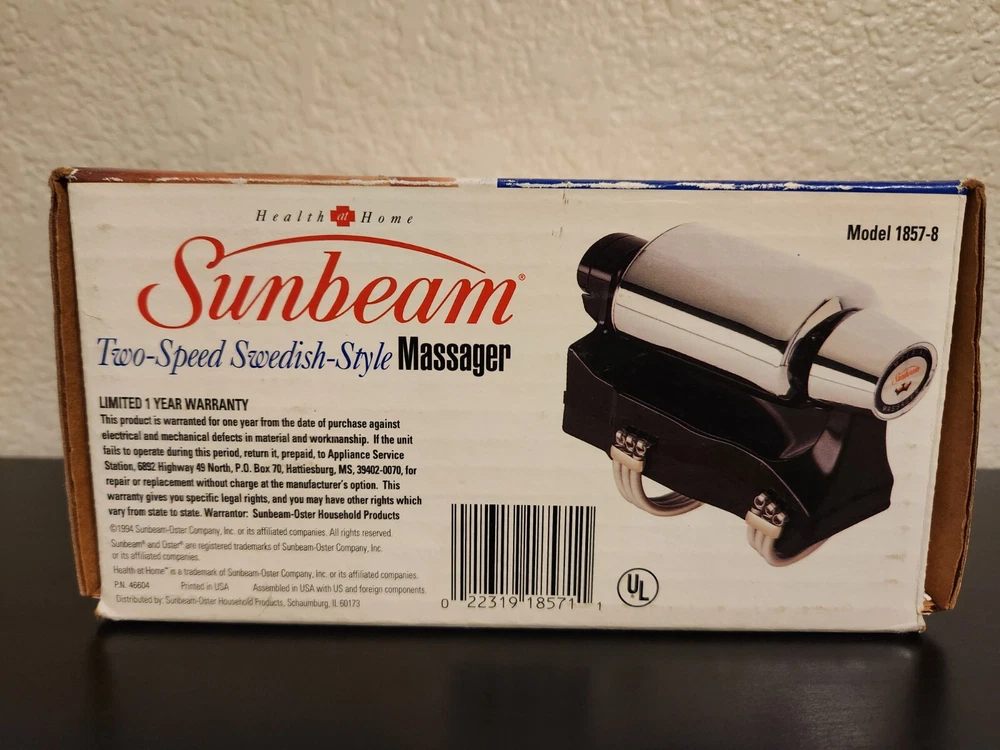 Sunbeam Vintage Two speed Swedish Style Massager Model 1857 - 8 In Original Box.