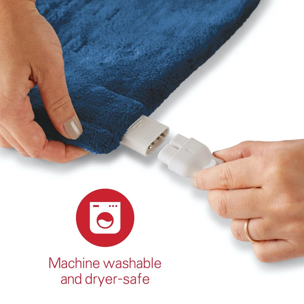 Open box New Heating pad Sunbeam King Size Heating Pad with XpressHeat® technology for fast, soothing relief. This extra-large 12” x 24” plush heating pad is perfect for back, shoulders, legs, or abdominal comfort. Features 6 adjustable heat settings and optional 2-hour auto shut-off for safety and convenience. ✔ King Size – 12 in x 24 in (30.5 cm x 61 cm) ✔ XpressHeat® – feel heat in about 30 seconds ✔ 6 Heat Settings with digital display ✔ Optional 2-Hour Auto-Off or Stay-On mode ✔ Soft, plush fabric (blue) ✔ Moist heat option (just spray lightly with water) ✔ Machine washable pad (controller removable) Great for muscle soreness, tension, cramps, or general comfort. Box has visible wear, but heating pad itself is clean and in very good condition. Fully tested and working.