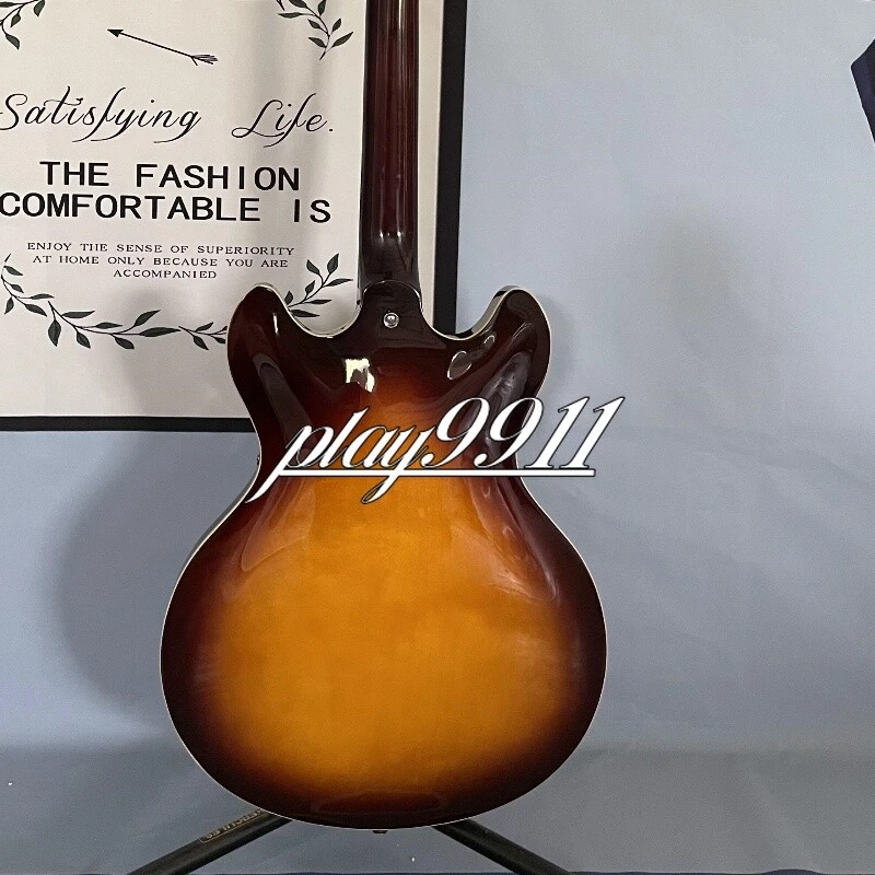 Sunburst Semi-hollow F-hole Electric Guitar Chrome Hardware HH Pickups Factory Product Details: Every guitar is made with painstaking effort, we design and manufacture with our hearts, so that every guitar is unique. Other details are as follows: Body: Mahogany Neck: Mahogany Fingerboard: Rosewood Pickup Switch:3-ways Joint:Bolt on Company Profile Our company is located in Weifang,China,specializing in producing various kinds of guitar and its accessories. Currently we produce over 200 different models of electric and acoustic guitars! We combine hand craftsmanship, with modern design techniques, to create quality, comfortable feeling, excellent sounding instruments! That not only look fabulous, but are extremely playable and the quality truly extends above the price tag. Quality Guarantee All of our products must pass a detailed inspection and quality control check before leaving our facilities. This ensures that our products will meet the global standards for instruments, that have been set over many decades. Note: Remember we make these guitars by hand. And we don't just make one. Things like wood grain, texture, and color, may differ slightly than the one pictured. We do many custom builds so please contact us today with those ideas on that next one of a kind guitar. Since we are the manufacturer we are also able to offer you WHOLESALE pricing, with extreme consistency in product. Delivery Time Once payment has been confirmed, your item will be shipped within 3 business working days.Our Products do ship from China via EMS and will generally take 15 to 25 days to arrive at address in: The United States, Canada, Australia, and Europe. However it may take up to 60 days to ship to countries that do not use EMS. The speed also base on Custom Clearance Speed, which we can't control .So if you want this for your gig next weekend it probably wont make it on time, so please keep that in mind when ordering. We package very carefully but can highly recommend shipping your new baby in a protective soft or hard case. Return Policy Please contact us within 3 days of receiving your damaged or defective item and we can start the exchange/return/refund process. If there is a delay in handling time we will let you know. Please make sure your shipping address is current and updated. Note: - Keep the defective product exactly as it arrived , including packaging. Do not remove any parts or write on the instrument - Please Re-pack item exactly as it was packaged whether it be single or double boxed. Kindly avoid using Duct Tape - Please use a package carrier that allows you to insure and track their packages. Such as: FedEX - UPS - USPS. Customer service All emails will try to be answered within 24 hours. We do receive a lot of emails and sometimes they get lost so, If you do not receive a reply within a few business days, please kindly re-send your email and we will reply back you as soon as possible. However we have 100% satisfaction guarantee. So don't worry we have your back! Please contact us first, our customer service representatives are here to assist you.