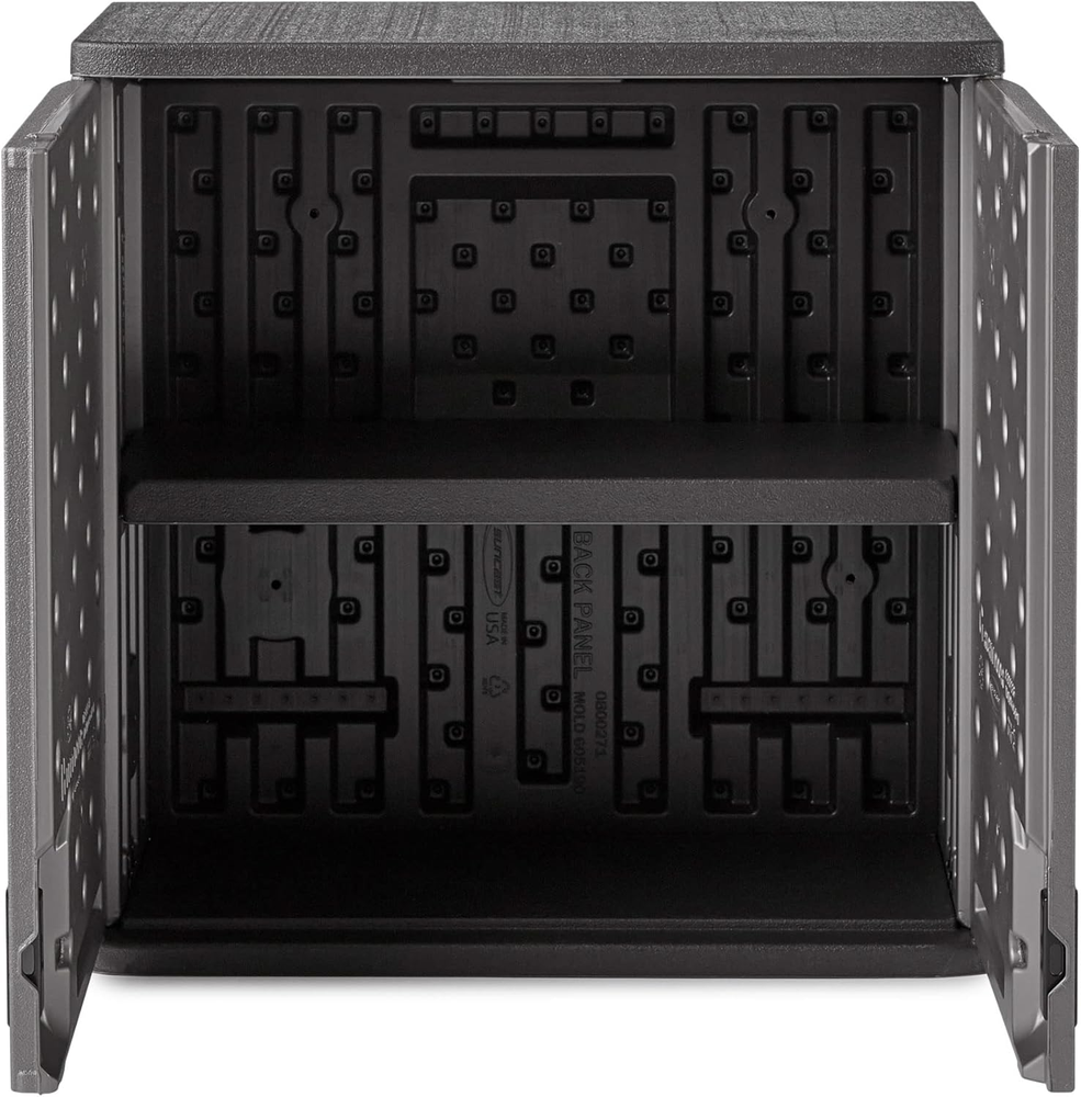 Store New Arrivals Add to Favorite View Feedback Suncast 4 Cubic Feet Resin Single Shelf Garage Wall Storage Cabinet, Platinum Description Item model number BMC3000 Storage Volume 113.27 Liters Pattern Cabinet Country of Origin USA Batteries Included? No Top Material Type Resin Number of Racks 1 Number of Pieces 1 Room Type Garage Finish Resin Assembly Required Yes Number of Doors 2 Shape Rectangular Is Customizable No Brand Suncast Installation Type Wall mount Frame Material Resin Maximum Weight Capacity 50 Pounds Finish Type Resin Included Components Shelves Item Package Quantity 1 Batteries Required? No Door Style Slab Item Weight 27 pounds Number of Compartments 2 Number of Shelves 1 Special Features Lightweight, Durable Special Feature Lightweight, Durable Weight Limit 50 Pounds Part Number BMC3000 Number of Levels 1 Mounting Type Surface Mount Color Silver/Platinum Is Discontinued By Manufacturer No Global Trade Identification Number 00044365021904 Handle Material Metal Material Resin, Metal Style cabinet Base Type Cross Back Material Type Resin Recommended Uses For Product Garage Manufacturer Suncast Product Dimensions 12"D x 30"W x 30.25"H Size 1 Pack Safely stores all your heavy lawn, garden, and outdoor equipment Multi-wall resin is durable and engineered to stand up to your heaviest loads without rusting, scratching, or denting 1 shelf included that holds up to 50 pounds Metal-reinforced shelving resists bending under heavy weight Dimensions: Exterior (W x D x H): 30 x 12 x 30.25 inches; Interior (W x D x H): 27.25 x 9.75 x 27.5 inches Garage Wall Cabinet ABOUT US We offer the best prices around on high quality products. Our E-store includes media such as books, movies, music and games while offering electronics, toys, sporting apparel, clothing, tools, general home, garden items and more. SHIPPING We are always working hard to ensure your package arrives as soon as possible. Please understand that some factors like weather, high postal traffic, and the performance of shipping companies are outside of our control. We offer free shipping to the lower 48 states and ship within 2 business days of payment, usually sooner. We do not accept P.O. Boxes. Please provide a physical address. RETURNS We offer a 30-Day Return Policy on items which you are not completely satisfied with. You have the option for a full-refund or an exchange of the item. No returns are available on items shipped outside of the USA. PAYMENT We accept PayPal. CONTACT US This page content is yet to come Please ad us to your favorite seller and visit again later Thank You