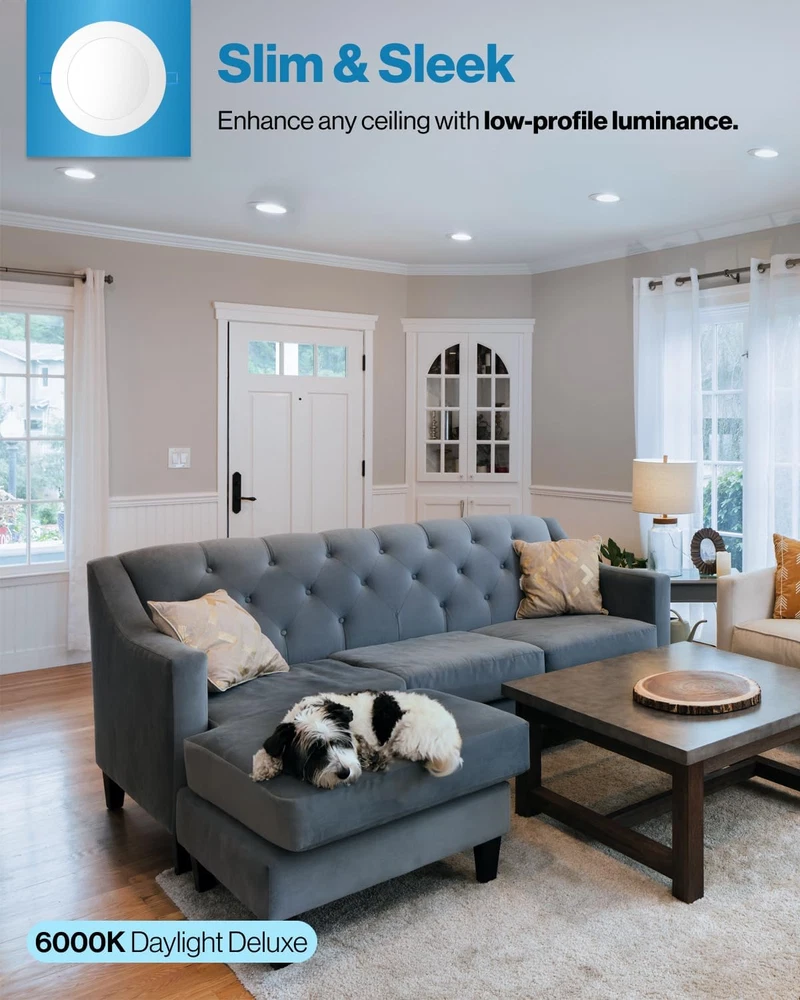 Store New Arrivals Add to Favorite View Feedback Contact Sunco 4 Pack 4 Inch Ultra Thin LED Recessed Ceiling Lights Slim, 6000K Daylight Description Item model number DL_SL4-10W-6K-4PK Light Source Type LED Style Modern Power Source Corded Electric Number of Light Sources 4 Material Type Aluminum, Polycarbonate Warranty Type manufacturer Theme Space Lighting Method Downlight Finish Types Matte White Embellishment Feature Crystal Controller Type Push Button Unit Count 4 Count Room Type Kitchen, Bathroom, Bedroom, Living Room, Home Office, Dining Room Brand Name Sunco Lighting Specification Met ETL Product Dimensions 4.9 x 0.9 x 4.9 inches; 1.76 Pounds Material Aluminum, Polycarbonate Required Assembly No Model Number DL_SL4-10W-6K-4PK Installation Type Flush Mount Additional Features All-in-One Package, Dimmable, Wafer Thin, 10W, IC Rated Specific Uses For Product Home, Office Included Components Junction Box Fixture Type Non Removable Brightness 650 Lumen Country of Origin China Light Color Daylight Deluxe Item Weight 1.76 Pounds Light Fixture Form Ceiling Item Dimensions L x W x H 4.9"L x 0.9"W x 4.9"H Shade Color White Mounting Type Direct Color 6000K Daylight Deluxe Wattage 10 watts Indoor Outdoor Usage Indoor Shape Circular Voltage 120 Volts Control Method Remote Manufacturer Sunco Lighting Brand Sunco Lighting Style Name Modern Light fixture form Ceiling Top Rated 4 Inch Slim LED Downlight with Junction Box and Smooth Trim ✅ IC RATED - Sunco's slim downlights are IC rated, meaning they are thermally protected and won’t overheat or ignite surrounding insulation in the roof or overhead joist space. Both the light and its junction box are safe for direct contact with ceiling insulation. ✅ SIMPLE INSTALL - Our LED slim downlights come equipped with a junction box which means they do not need a can. This 4-inch Wafer Thin Slim installs fast. Cut a hole in the ceiling to size then fold the spring-loaded brackets in while pushing up into the hole. Spring-loaded brackets fit any ceiling type: double drywall, single drywall, and soffit. ✅ DIMMABLE - Seamless dimming capabilities (10%-100%) to fit any mood or décor. ✅ SUNCO BENEFITS - 7-Year Warranty! Sunco is proudly based in the USA, offering quality products at affordable prices backed by industry-leading warranties and knowledgeable support specialists. Product Description Similar Products Add to Cart Add to Cart Add to Cart Add to Cart Customer Reviews 4.4 out of 5 stars 2,144 4.5 out of 5 stars 1,519 4.6 out of 5 stars 1,546 4.3 out of 5 stars 119 4.7 out of 5 stars 1,115 Price $54.99 $ 54 . 99 $99.99 $ 99 . 99 — $63.99 $ 63 . 99 $29.99 $ 29 . 99 Lumen Count 650 Lumens 650 Lumens 650 Lumens 750 Lumens - Wattage 11W 10W 10W 12W - Equivalency 60W 60W 60W 75W - Dimmable ✓ ✓ ✓ ✓ - Junction Box Included ✓ ✓ Integrated ✓ - Color Rendering - - - CRI 90+ - Voltage 120V 120V 120V 120V - Moisture Rating Damp Rated Damp Rated Damp Rated Damp Rated - IC Rated ✓ ✓ ✓ ✓ - Can Required No No No No - ABOUT US We offer the best prices around on high quality products. Our E-store includes media such as books, movies, music and games while offering electronics, toys, sporting apparel, clothing, tools, general home, garden items and more. SHIPPING We are always working hard to ensure your package arrives as soon as possible. Please understand that some factors like weather, high postal traffic, and the performance of shipping companies are outside of our control. We offer free shipping to the lower 48 states and ship within 2 business days of payment, usually sooner. We do not accept P.O. Boxes. Please provide a physical address. RETURNS We offer a 30-Day Return Policy on items which you are not completely satisfied with. You have the option for a full-refund or an exchange of the item. No returns are available on items shipped outside of the USA. PAYMENT We accept PayPal. CONTACT US This page content is yet to come Please ad us to your favorite seller and visit again later Thank You CUSTOMER SATISFACTION We try our very best to make sure every customer is completely satisfied. If there's a problem, message us! We're happy to help.