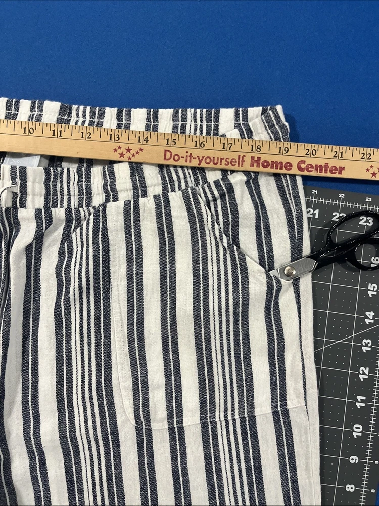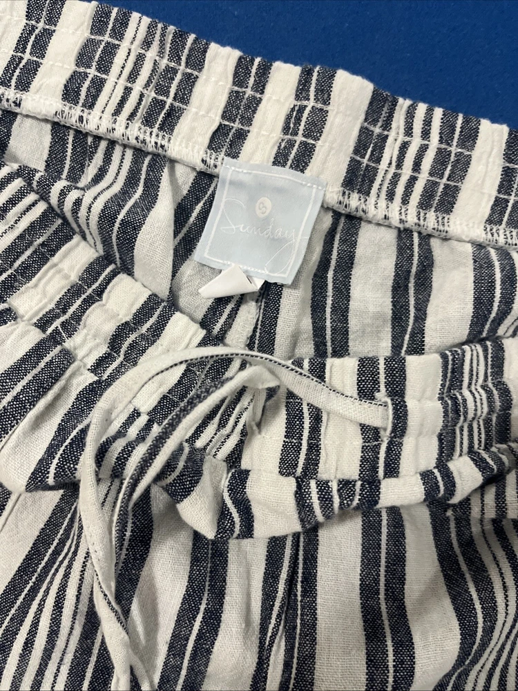 Sunday Linen Lounge Pants Size XL Blue / White Stripe Wide-Leg Baggy Beach