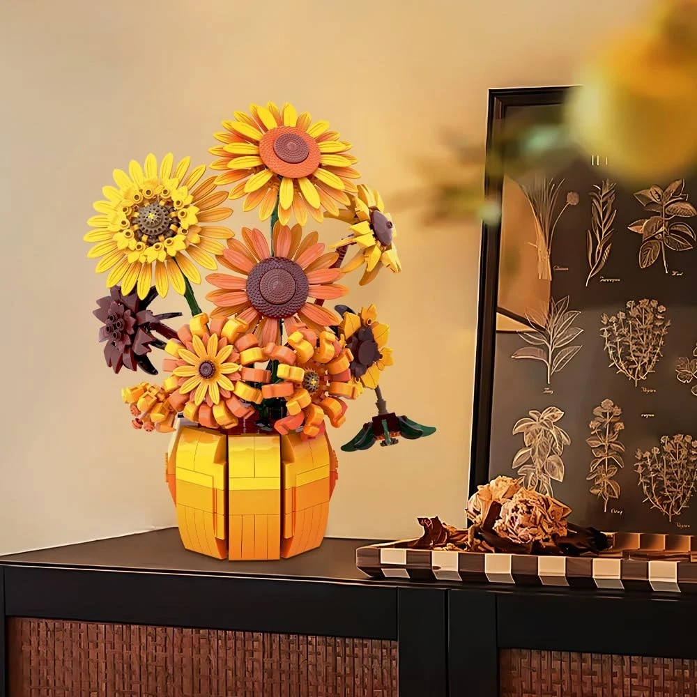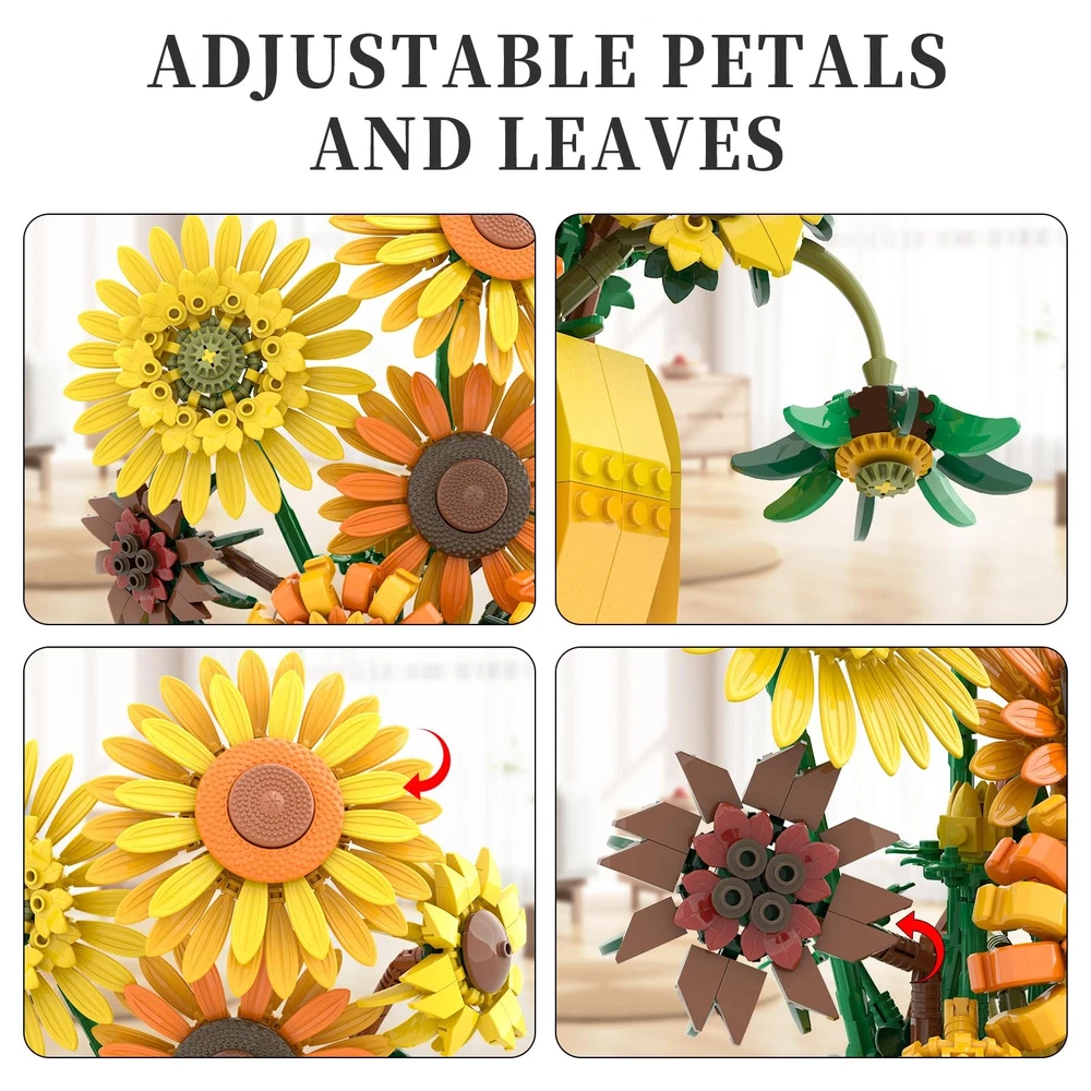 Valentine's Day Gifts for Him Unleash your inner architect and let your creativity blossom with this captivating 1009-piece Sunflower pot building set. Crafted with meticulous attention to detail, this set allows you to construct an intricate and vibrant sunflower-themed planter that will add a touch of whimsy to any space. Designed to engage and delight builders of all ages, this set promises hours of immersive fun as you piece together the petals, stem, and pot to create a stunning 3D masterpiece. Whether you're a seasoned builder or a newcomer to the world of construction toys, this set offers a rewarding and satisfying building experience. Embrace the joy of hands-on creativity and let your imagination run wild with this remarkable Sunflower pot building set. 【Exclusive Design】Meticulously crafted to replicate sunflowers in a stunning 1:1 scale. With rich textures and impressive details, this adults set de flores includes 10 sunflowers in various stages of bloom, complete with movable parts for a captivating bouquet building experience. Valentine's Day Gifts for Him Her 【Family-Friendly Activity】Made up of 1000+ pcs high-quality bricks, compatible with lego, this botanical collection set provides 2-4 hours of fun. It's perfect for family bonding and creating lasting memories. The sturdy design ensures the flowers bouquet stays intact as a charming keepsake of your shared time. 【Stress-Free Building for Relaxation!】Escape the hustle of daily life with a calming and creative activity. Building these sunflowers centerpiece offers the perfect opportunity to unwind while indulging in your artistic side. 【Brighten Any Space with Everlasting icons Sunflowers!】Bring timeless beauty to your home or office with these vibrant, never-fading sunflowers. This dried fall flowers set is not only a unique artistic décor but also an ideal gift for Christmas, birthdays, or any special occasion. 【Safe and High-Quality】Crafted from premium, non-toxic ABS materials, this floral bonsai set guarantees safety and durability. Plus, we offer excellent after-sales support to ensure your building experience is nothing short of perfect!