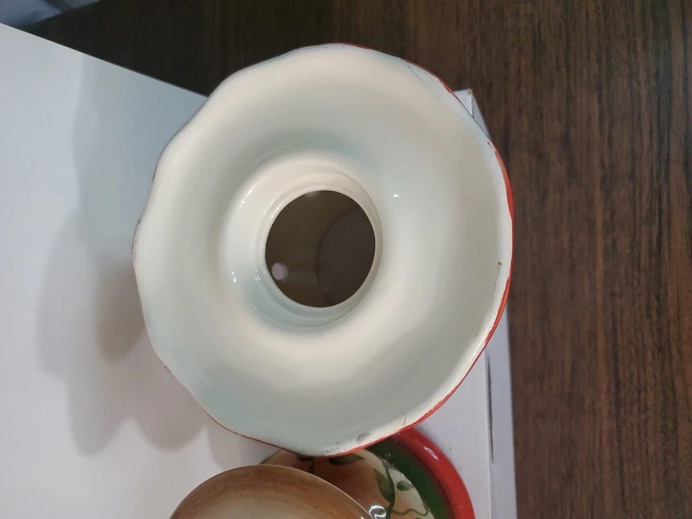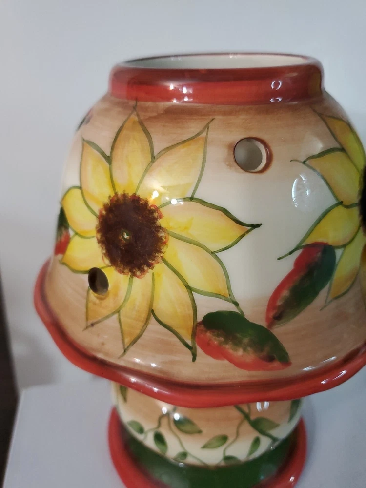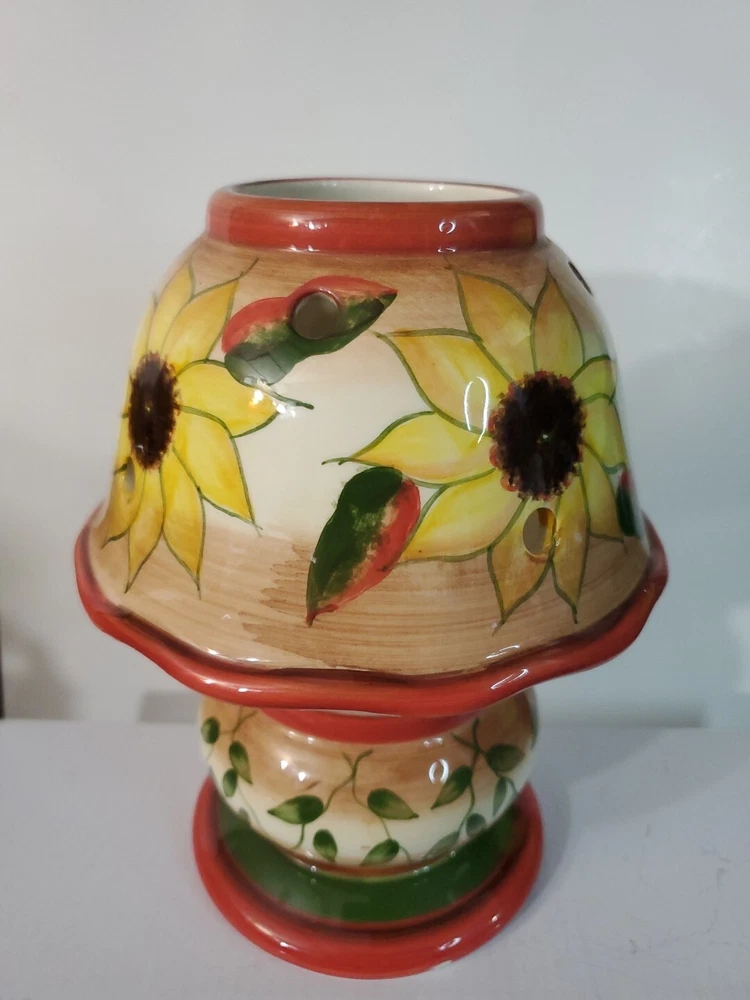 Has tiny white specs on the shade. Hard to notice 8 inches tall Sold as is.Please refer to photos for details and any imperfections and ask any questions you may have as there are no returns