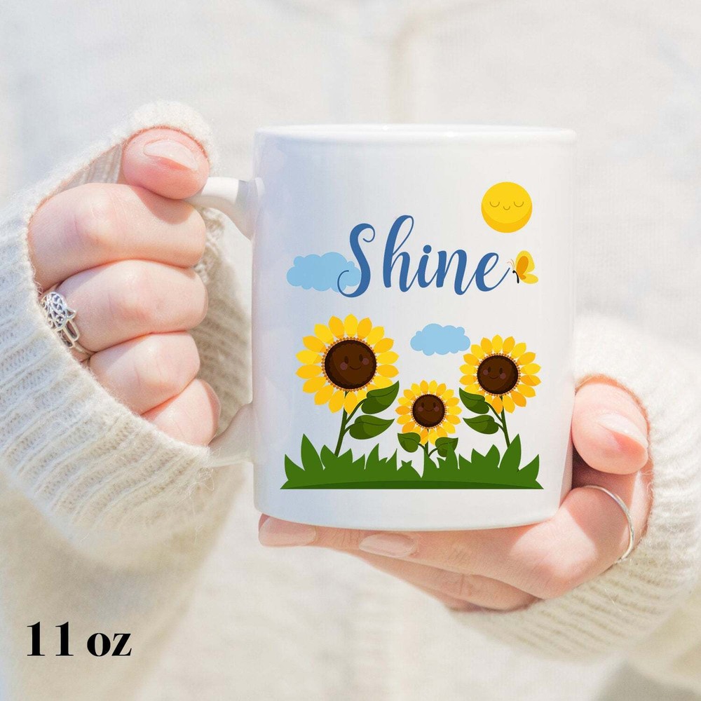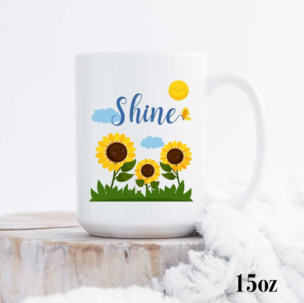 Shine Sunflower Mug Sunflower Mug Sunflower Gift Sunflower Coffee Mug Sunflower Product Details.. This high quality 11oz. ceramic white mug has a premium hard coat that provides crisp and vibrant color reproduction sure to last for years. Perfect for all hot & cold beverages. The highest quality printing possible is used. It will never fade no matter how many times you wash it. Material: 100% Ceramic. Print both sides. Dishwasher and Microwave Safe. High Gloss + Premium White Finish. Printed in the U.S.A. Personalized & Custom. We support personalized and custom mug to add custom, when placing an order, you can add notes to the "order note" in shipping address section. Also you can contact us directly via message. Shipping Info. Ready to ship in 1 to 2 business days, All products are made-to-order and proudly printed in the United States. Shipped by USPS and DHL, You will receive your order in 5-7 days. Replace & Refund. All products are defective during shipping broken, chipped will be replaced free of charge. You are not satisfied with the product, we will refund 100% money to you. If any other issues arise, please do not hesitate to message, we would be more than happy to assist you.