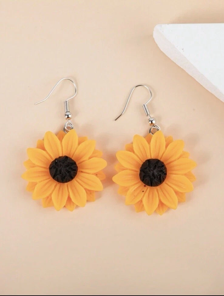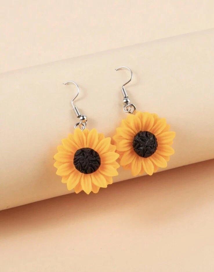 Add a touch of nature-inspired style to your look with these sunflower acrylic drop earrings. The vibrant yellow and brown colours are perfect for adding a pop of colour to any outfit. These dangle/drop earrings feature a beautiful flower shape and a hook closure for easy wear. Crafted from high-quality iron alloy and acrylic materials, these earrings are both durable and lightweight, making them perfect for daily wear. These earrings are suitable for women of all ages and are a great addition to any jewellery collection.