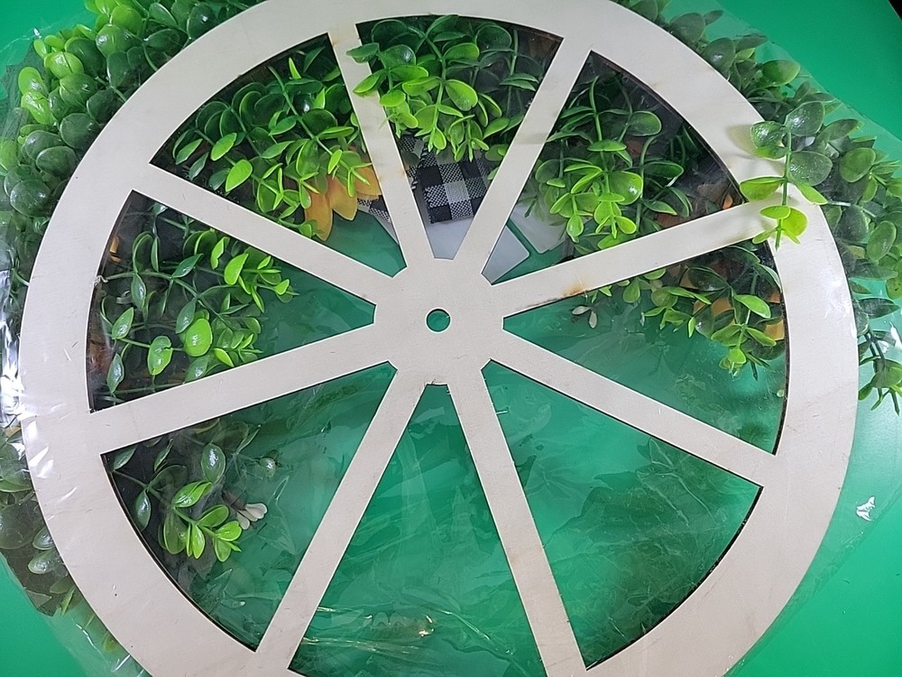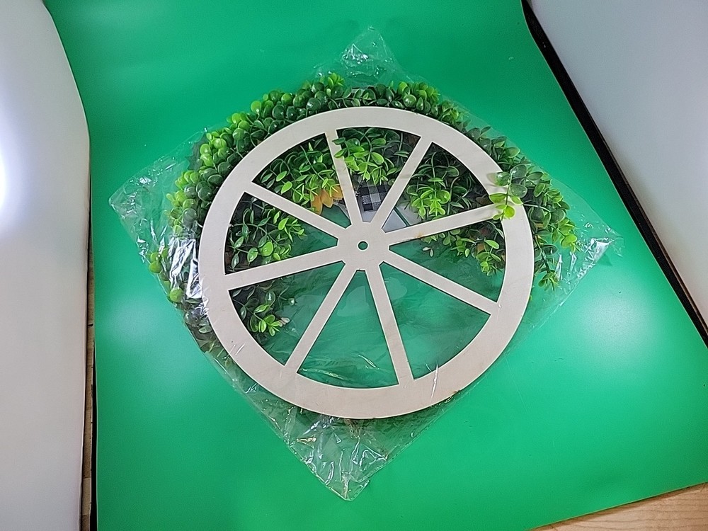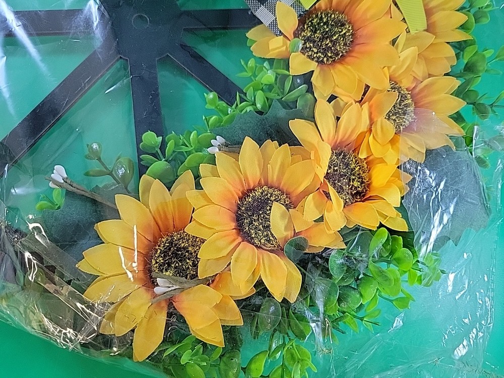 This BRAND-NEW Sunflowers Wreath with Wheel is a colorful door decoration perfect for a wedding or garden setting. The wreath features multicolor sunflowers arranged in a circular shape, making it a lovely addition to any home or outdoor space. Our merchandise has been generously donated by the friends and families of Community Mainstreaming Associates (CMA). All proceeds from the sale of this item benefit CMA, a 501c3 charity supporting adults with intellectual and developmental disabilities. Thank you for your support. The Sunflowers Wreath with Wheel is a colorful door decoration perfect for a wedding or garden setting. The wreath features multicolor sunflowers arranged in a circular shape, making it a lovely addition to any home or outdoor space.