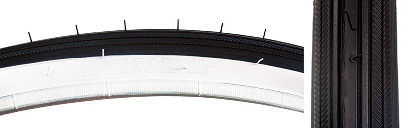 Product Details Recreational tire with raised center for low rolling resistance. Product Info Type Road Size 27x1-1/4 ISO 630 Bead Wire Tread/SW BLK/WHITE PSI 70